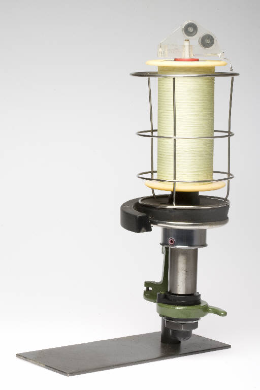 L'oggetto è un fuso a doppia torsione per seta, completo di svolgitore (brevetti n. 1111267 del 1979 e n. 1217726 del 1988).