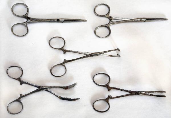 Enterostato, forbici e pinzette chirurgiche
