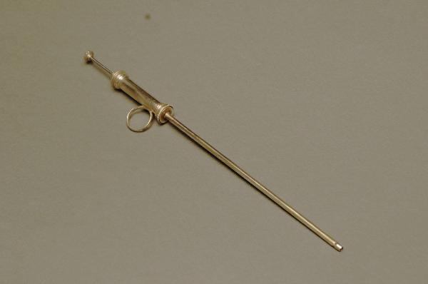 Lo strumento è costituito da una cannula d'argento nella quale è contenuta una punta molto lunga. La punta può fuoriuscire parzialmente dalla cannula grazie a una molla a spirale presente nel manico. Un anello fissato all'impugnatura consentiva di tenere saldamente in mano lo strumento.
