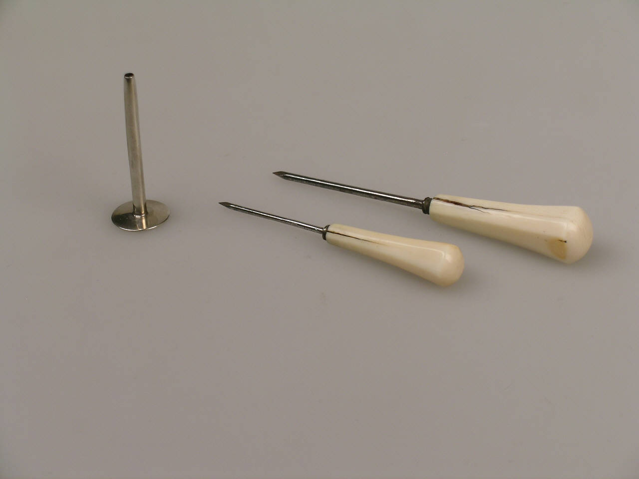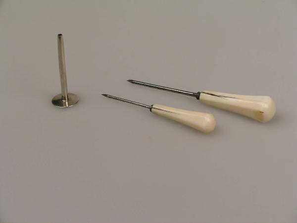 Gli strumenti sono costituiti da una punta di acciaio, dotata di una impugnatura di avorio, contenuta in una cannula d'argento (la cannula è presente solo nello strumento di maggiori dimensioni). La cannula presenta ad un'estremità una disco che viene a trovarsi in corrispondenza dell'impugnatura dello strumento.