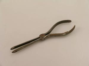 Pinza dotata di due bracci curvati ad ansa nell'impugnatura. Una leva fissata a uno dei bracci e incidente sull'altro regola l'apertura della pinza, facendola richiudere non appena si smette di esercitare una pressione. Le estremità della pinza, internamente a cucchiaio e attraversate da un occhiello, presentano una dentellatura sui bordi per consentire una miglior presa.