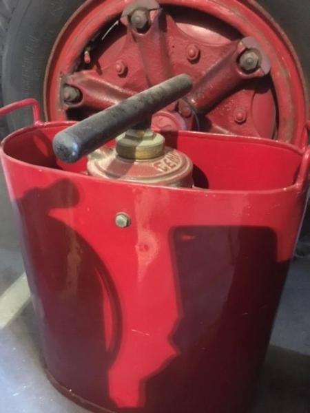 Pompetta monocilindrica spalleggiabile, usata nel primo novecento per incendi camino (canna fumaria) portata in spalle sui tetti e dove non era necessaria una grande quantità di acqua