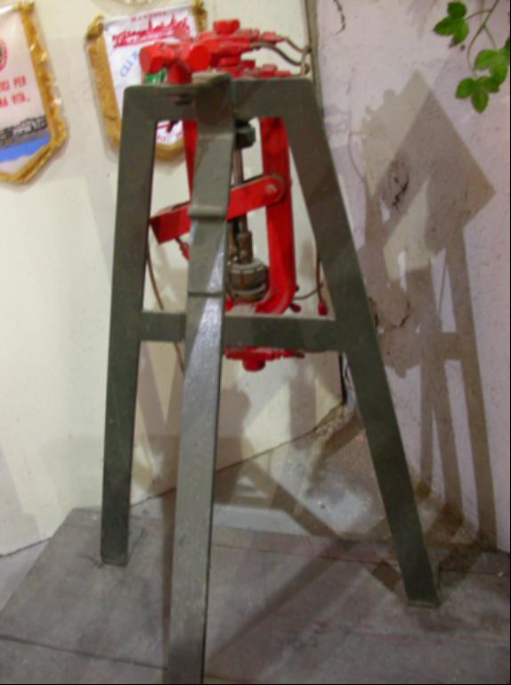 POMPA TRAVASO ANIDRIDE CARBONICA (CO2)\nANNO FABBRICAZIONE: ANNI 50\nCOSTRUITA DALLA DITTA BERGOMI MILANO\nPOMPA PER TRAVASO ANIDRIDE CARBONICA (CO2) \nDALLE BOMBOLE AGLI ESTINTORI PORTATILI \nPER IL RIEMPIMENTO DEGLI STESSI.