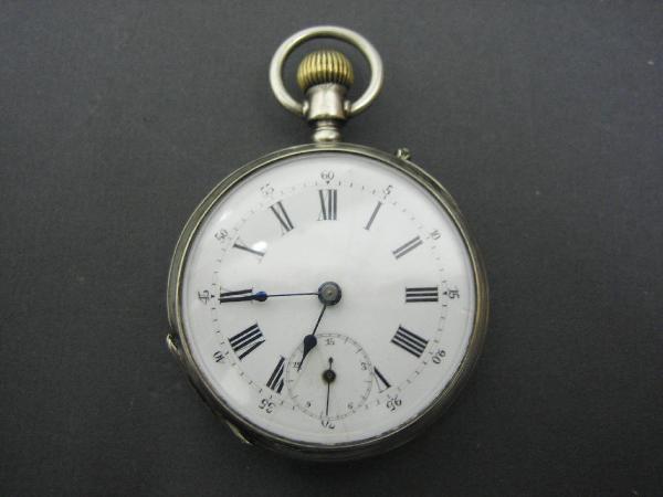 Cassa in quattro parti: fondo a guillochet con decorazione floreale al centro, cuvette liscia, carrure liscia e lunetta portavetro. Pendente cilindrico con corona di carica sferica e anello circolare inserito a pressione.\nQuadrante in smalto bianco con indicazione delle ore in caratteri romani e dei minuti, di cinque in cinque, in cifre arabe. Quadrantino alle ore 6 per i secondi con numerazione divisa in quindici con indicazione in cifre arabe di tre in tre. Lancette a pera per le ore e i minuti, filiforme per i secondi.\nMovimento a tre quarti di platina. Scappamento a cilindro. Regolazione del tempo a racchetta su settore graduato Slow/Fast. Carica a remontoire.