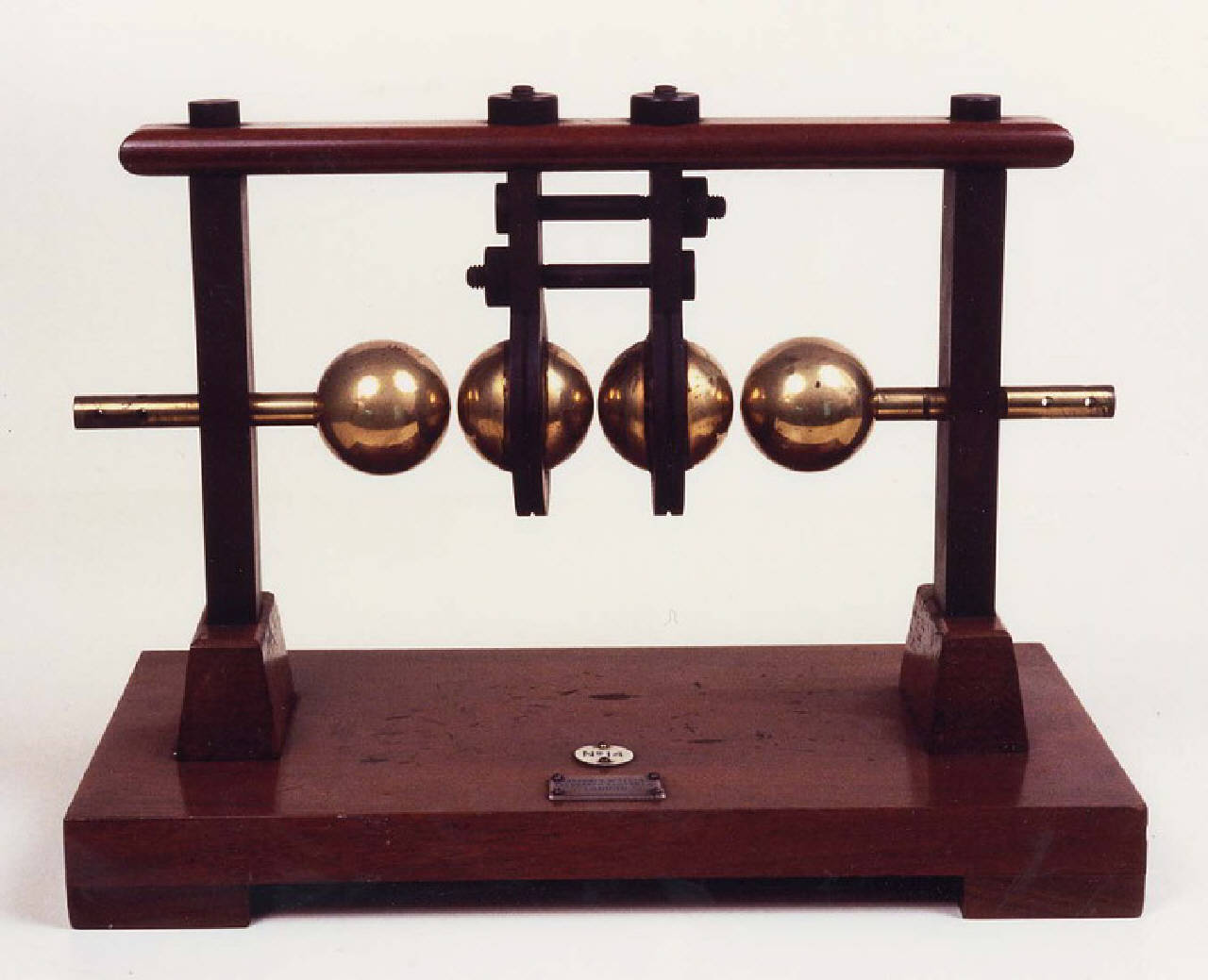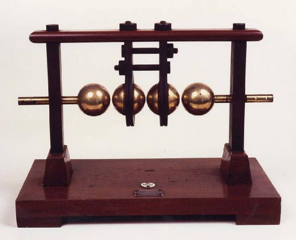 Una base in legno reca due montanti in ebanite collegati da una traversa superiore in legno. Nei montanti sono inseriti due elettrodi terminanti con due sfere d'ottone. Nello spazio compreso tra queste due sfere sono inserite altre due sfere dello stesso diametro e materiale, racchiuse in una struttura in ebanite imperniata nella traversa superiore in legno del telaio. Un foglio ricurvo di pergamena (mancante) è fissato alla struttura in ebanite grazie ad apposite funicelle, in modo da avvogere parzialmente la coppia di sfere centrali. In questo modo le sfere si trovavano in un recipiente impermeabile in cui veniva versato dell'olio di vaselina.