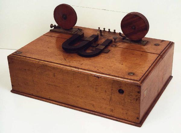 Costruito dall'Aresenale di La Spezia (?) o forse dallo stesso Guglielmo Marconi (?), questo modello fu utilizzato a bordo della Carlo Alberto da Gugliemo Marconi nell'estate del 1902. E' composto da una scatola in legno all'interno della quale risiede un motore a molla. All'esterno della scatola (sopra) sono presenti due pulegge in legno: una con doppia sede e collegata al motore tramite una cinghia (mancante) e l'altra libera (o in folle). Queste pulegge ospitano una trecciola in ferro (mancante). Due grossi magneti "a ferro di cavallo", parzialmente sovrapposti, sono fissati orizzontalmente sul piano superiore della scatola e presentano i loro terminali (poli) in corrispondenza di due bobine coassiali in rame (entrambe mancanti). Due dei quattro serrafili servono per collegare il ricevitore telefonico con la bobina esterna, mentre gli altri due servono al collegamento della terra e dell'antenna con la bobina interna.