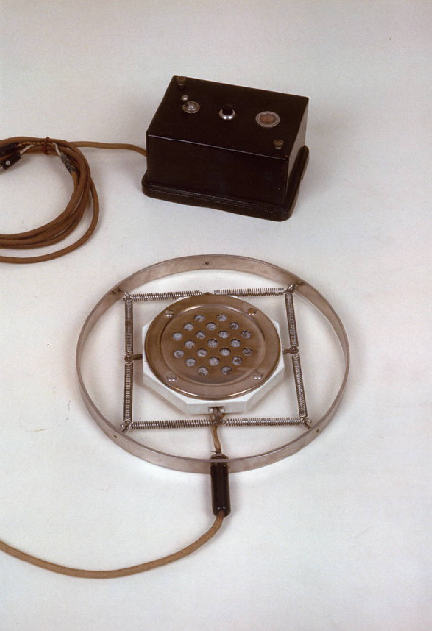 Il microfono è composto da una capsula di trasduzione in plastica (?ceramica?) e acciaio contenente granuli di carbone. Questa è sospesa mediante molle di acciaio armonico ad un anello in metallo cromato. Nella parte inferiore dell'anello escono i fili di collegamento con l'alimentatore, composto da una scatola in metallo contenente: pila elettrica (4,5 Volt, 6 Amper), condensatore, trasformatore e interruttori.