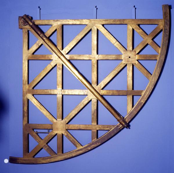 Il quadrante ha la struttura tipica degli strumenti di John Bird (1709-1776); è completamente in ottone e l'armatura è solida e ben lavorata.\nIl telescopio vero e proprio è imperniato nel vertice del quadrante (costituito da un settore circolare di poco più di 90 gradi) e poteva ruotare liberamente attorno ad esso consentendo il puntamento di un astro a qualunque altezza sull'orizzonte. Lo strumento, per poter essere utilizzato correttamente, doveva essere posizionato esattamente lungo il meridiano locale (ossia in direzione Nord-Sud) con il piano perfettamente verticale.\nMancano oggi numerose parti dello strumento; sono rimasti infatti solo l'armatura, il lembo, il tubo del telescopio e il nonio. Sul lembo ci sono due serie di divisioni. Nella parte più interna si trova la divisione in gradi con intervalli minimi di 5 primi d'arco. La scala esterna è divisa invece in 96 parti ciascuna suddivisa in 16 intervalli. All'estremità libera del telescopio si trovano la lastra con i due nonii e la ganascia di bloccaggio con la vite micrometrica per gli spostamenti fini. Il nonio interno permetteva una precisione nella lettura di 30 secondi d'arco, quello esterno di 13 secondi d'arco. La lettura del singolo secondo d'arco si otteneva utilizzando il micrometro a vite.\nL'obbiettivo del telescopio era un doppietto acromatico di 9 cm. circa di diametro per 244 cm. circa di lunghezza focale. Attualmente, però, tutte le ottiche sono mancanti.
