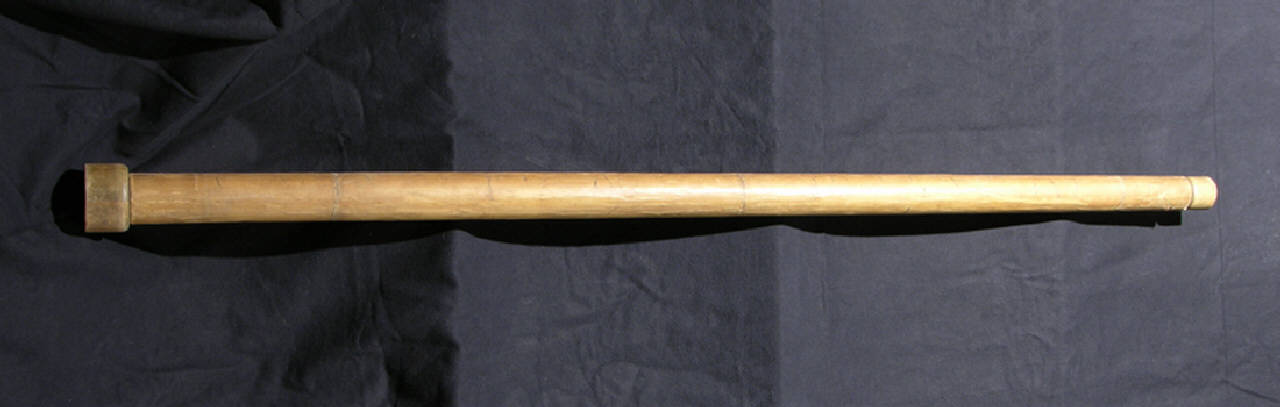si tratta di una replica fedele di uno dei cannocchiali progettati e costruiti da Galileo Galilei. E' di concezione estremamente semplice essendo composto da due semplici tubi uno, di diametro inferiore, inserito nell'altro e libero di scorrere avanti e indietro. Nel caso del cannocchiale originale questa operazione permetteva la messa a fuoco dell'oggetto osservato. Alle estremità il tubo termina con due innesti - sempre di forma cilindrica - dei quali quello verso il lato della lente obiettiva ha un diametro leggermente superiore; in essi sono ricavate le sedi per ospitare le lenti che in questo caso erano dei semplici pezzi di vetro, oggi mancanti.\nIl tubo è rivestito in carta o pergamena; lungo tutta la sua lunghezza sono presenti, sebbene poco evidenti, alcuni fregi decorativi (da verificare)