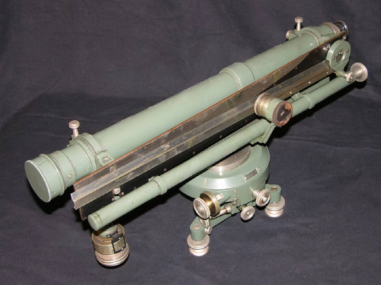 Lo strumento è dotato di un cannocchiale rifrattore posizionato orizzontalmente che appoggia su una staffa di supporto lunga quasi quanto il cannocchiale stesso. Il cannocchiale è mantenuto nella sua posizione da due ganasce che lo fissano alla staffa alle due estremità opposte. Tali ganasce non sono perfettamente identiche; infatti quella verso l'oculare del cannocchiale è incernierata alla staffa mentre quella verso l'obiettivo può spostarsi verticalmente sotto l'azione di una vite micrometrica posizionata al di sotto. L'escursione possibile è comunque relativamente limitata. Sempre sulla staffa è anche fissata una livella lineare indispensabile per garantire la corretta messa in posizione dello strumento prima del suo utilizzo.\nSu un lato del cannocchiale, solidalmente al basamento, si trova la scala graduata costituita da una riga metallica montata parallelamente all'asse del cannocchiale e lunga quasi quanto il cannocchiale stesso. Questo tipo di scala è particolarmente originale in quanto, sebbene debba consentire di misurare degli angoli, non è di forma circolare ma lineare. L'apparente anomalia viene risolta grazie ad un grafico della funzione angolare incisa su una seconda riga metallica questa volta solidale con il cannocchiale. La misura viene effettuata nel punto di intersezione delle due scale dove una piccola lente di ingrandimento facilita la lettura. Una vite micrometrica situata in prossimità dell'oculare permette all'operatore di compiere minime correzioni sull'inclinazione del cannocchiale.\nTutto lo strumento è sorretto da un basamento circolare poggiante su tre piedini a vite calante che consentono la messa in bolla di tutto l'apparato.