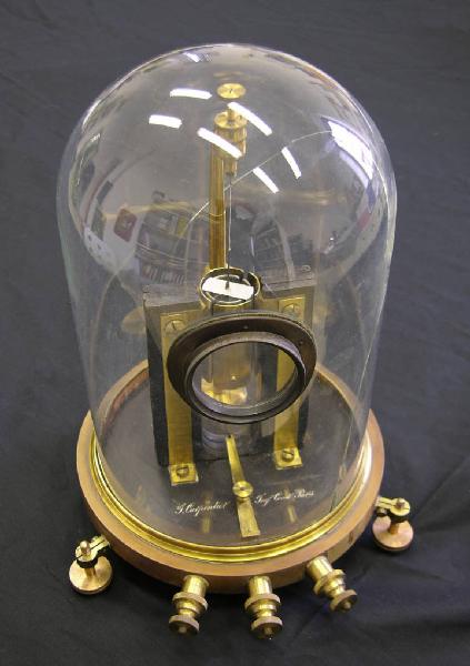 La base dello strumento è in legno e a sezione circolare. Poggia su tre viti calanti in ottone e ospita tre morsetti per i collegamenti elettrici che sono posizionati nello spessore della base e disposti radialmente. Dalla base si innalzano verticalmente due blocchi ferromagnetici disposti simmetricamente rispetto al centro della base stessa e tenuti in posizione da piccole staffe in ottone. Al centro dei due elettromagneti è posizionato un cilindro che è libero di ruotare e che è sospeso per mezzo di un sottile filo; questo, a sua volta, è sorretto da un'asta fissata alla base. Lo strumento è ricoperto da una campana di vetro (che presenta purtroppo un grave segno di rottura) sulla quale è presente una finestra ottica per l'osservazione; da qui era possibile misurare lo spostamenteo dell'equipaggio mobile sotto l'effetto della corrente che veniva fatta passare nel cicrcuito consentendone la misurazione.