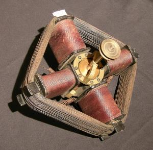 E' composto da quattro bobine elettriche identiche tra loro caratterizzate da sezione rettangolare ad angoli smussati. Le bobine sono posizionate con l'asse principale a novanta gradi l'uno dall'altro e sono solidali a una struttura centrale in ottone. Un secondo avvolgimento realizzato con numerosi giri di filo di rame unisce le estremità libere delle bobine. Sono presenti, inoltre, spezzoni di filo conduttore per l'alimentazione elettrica degli avvolgimenti. La struttura centrale, sulla quale le bobine principali si innestano, è cava. Al suo interno è posizionato un perno su cui è montato un cilindro di rame. Ad una estremità del perno è posizionata una piccola puleggia per il trasferimento del movimento di rotazione indotto.