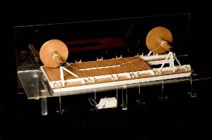 Il modello rappresenta un'imbarcazione formata da due scafi uniti da una piattaforma. La piattaforma presenta una lunga fessura al centro, attraverso la quale passa una doppia fune collegata a due ruote fissate alle estremità degli scafi. Alla doppia fune è fissata una benna scavatrice. Alle estremità degli scafi sono montate sei ancore per lato.