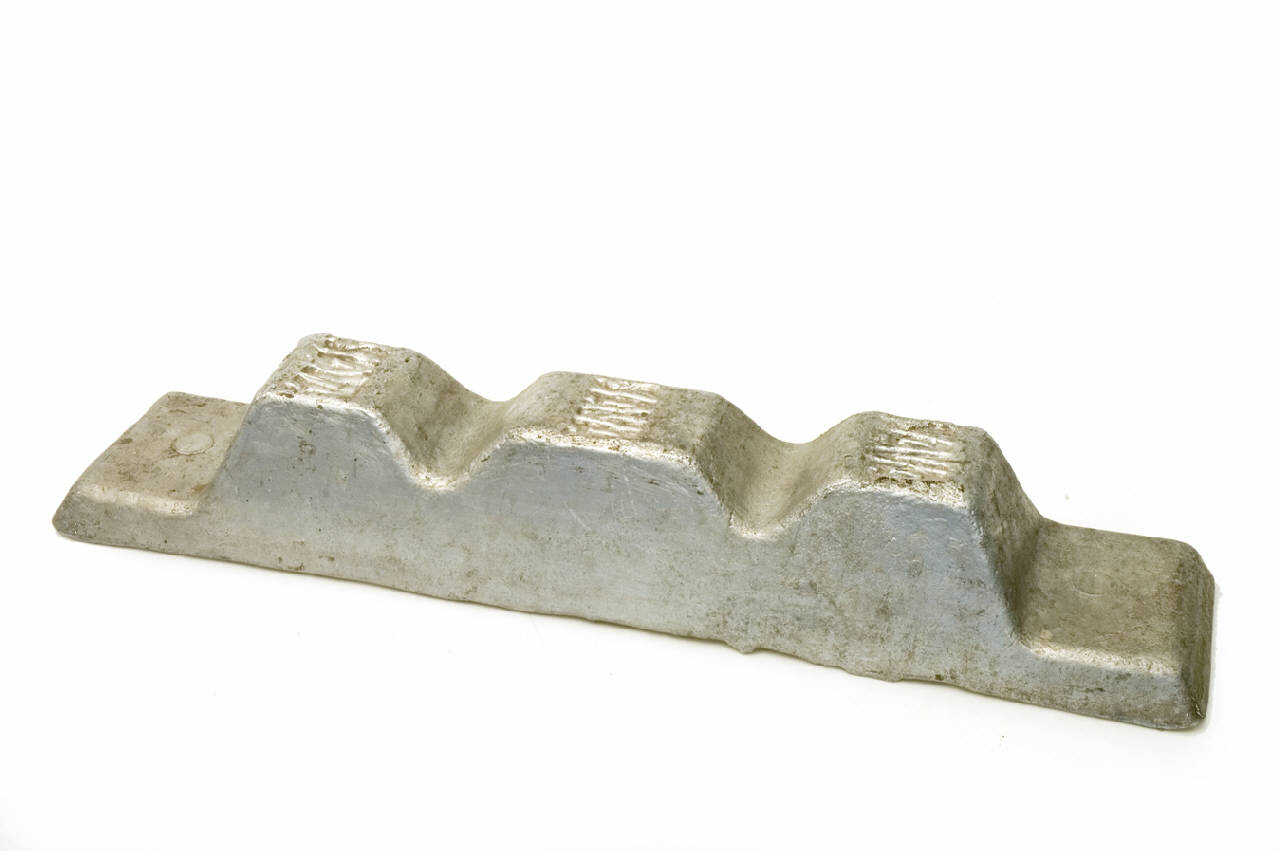 Fusione in alluminio, puro al 99.0%. A forma di parallelepipedo sagomato, è divisa in tre blocchi contigui. Su ogni blocco è riportata l'iscrizione SAVA.