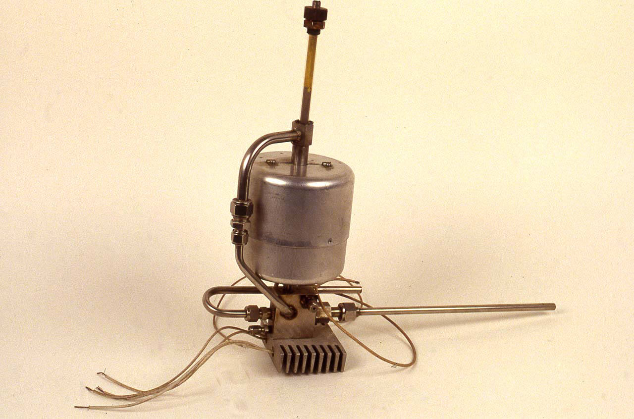 Lo strumento è di forma complessa . E' costituito da una camera di forma cilindrica cava, rivestita internamente da una schiuma sintetica. In questa camera è inserita superiormente una barra in ossido di zirconio mentre dalla parte inferiore fuoriescono i cavi per i collegamenti elettrici. Al di sotto della camera è collocato il sistema per l'intercettazione del fluido. Questo sistema è costituito da una piccola camera metallica dalla quale fuoriescono alcuni tubi e nella cui parte inferiore è avvitato un sistema di raffreddamento a lamelle metalliche. Da questo passavano i cavi per i collegamenti elettrici.