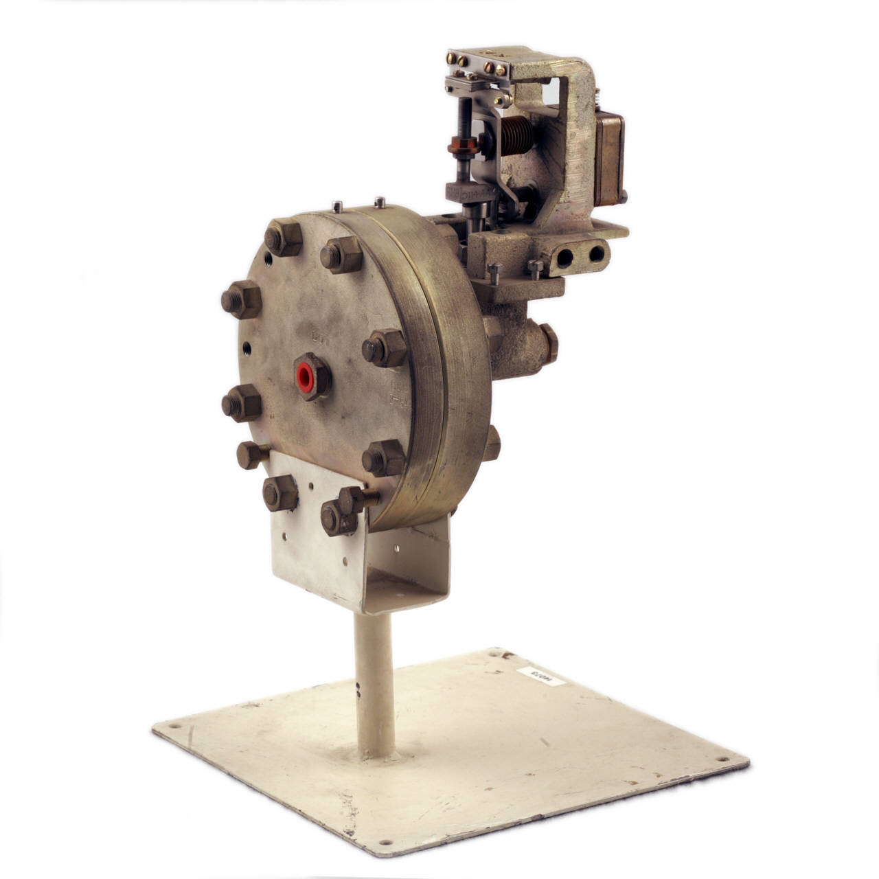 Lo strumento è sostanzialmente composto da due parti. Una, che ha forma di disco, funge da camera di espansione. In posizione assiale è collocato un condotto metallico che veniva inserito in linea nell'impianto principale. Attaccato a questo condotto vi è il meccanismo di regolazione vero e proprio. Questo è privo della copertura esterna, per motivi didattico esplicativi, ed è quindi possibile osservare parte del meccanismo di funzionamento interno. Dal condotto fuoriesce un asse metallico alla cui estremità inferiore è collocata la valvola di regolazione posizionata nel centro del condotto. Nella parte superiore questo asse termina su un sistema di regolazione governato da un dispositivo che sfrutta la pressione interna di un soffietto. Il meccanismo è governato da un piccolo apparato elettromeccanico, di forma quadrata, avvitato lateralmente e riporta su un lato una piccola vite micrometrica per la taratura e la regolazione. Sulla camera di espansione è avvitata una targa metallica sulla quale sono riportati il nome della ditta produttrice, il nome dello strumento e i parametri di funzionamento dello strumento. Lo strumento è posizionato su una base in metallo a soli scopi espositivi.