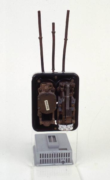 Lo strumento è costituito da una scatola metallica a forma di parallelepipedo con base in plastica. Nella parte frontale sono presenti due indicatori di temperatura, uno posizionato centralmente con scala compresa tra 0 e 35 °C, tacche ogni unità e indicazione numerica ogni 5. L'altra, nella parte inferiore dello strumento, con scala graduata tra x e xx (finire). Nella parte posteriore dello strumento sono presenti tre tubi in rame. Lo strumento è collocato su una struttura in plastica trasparente a soli fini espositivi.