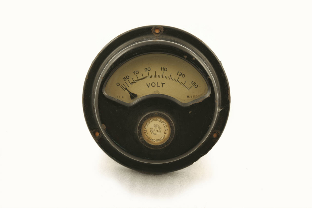 Questo strumento ha forma tipicamente cilindrica. Il quadrante occupa la metà superiore della superficie circolare ed è protetto da un vetro. La scala, che è disposta secondo un arco di circonferenza permetteva di misurare quantità comprese tra 50 e 150 Volt ed è suddivisa con tacche ogni 2 unità ed indicazione numerica ogni 20. La lancetta indicatrice è imperniata nella parte inferiore del quadrante. La struttura metallica dello strumento termina, dalla parte opposta alla finestra di lettura, con una flangia che ne facilitava il bloccaggio su un quadro di controllo generale. L'inserimento nel quadro avveniva per inserzione diretta tramite due connettori posti sul retro.
