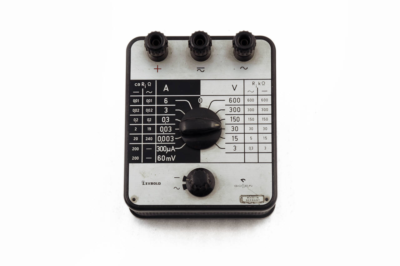 Questa cassetta di commutazione è di forma parallelepipeda, interamente costruita in metallo, e poggia su quattro piedini anch'essi in metallo. Tutto il bordo è forato per permetterne l'aerazione.\nQuesto strumento contiene tutti gli organi di connessione elettrica necessari per un sistema di misura: resistenze in serie e in derivazione, un trasformatore di misura, un raddrizzatore (diodo a filo d'oro).\nSulla faccia superiore sono inseriti un commutatore dei campi di misura che permette misure con corrente continua di 300µA, tensione continua di 60mV, correnti alternate di 0,003/0,03/0,3/3/6A e tensioni alternate di 3/15/30/150/300/600V (per diversi valori di resistenze) e un commutatore del tipo di corrente (continua o alternata). Sulla faccia superiore sono inoltre inserite tre boccole in ingresso da 4mm e sul bordo si trovano due boccole da 4mm in uscita ed una boccola Cinch per il cavo coassiale per il collegamento allo strumento di misura.