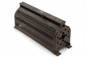 Questo reostato è costituito da un cilindro in ferro, attorno al quale è inserito il corpo d'avvolgimento a sezione ottagonale sul quale sono fissati gli avvolgimenti resistivi.\nIl cilindro in ferro e il corpo d'avvolgimento sono fissati ad un rivestimento perforato, in metallo verniciato a fuoco, che scherma tutti i punti di contatto. In particolare, il corpo di avvolgimento, ad eccezione della zona di contatto vera e propria, è isolato elettricamente tramite cilindretti in ceramica. Le zone di contatto della bobina sono collegate a tre morsetti a boccola in bachelite, collocati sulle pareti esterne del rivestimento, necessari per i collegamenti ai dispositivi di alimentazione e misura e per la messa a terra.\nNella parte superiore del rivestimento è alloggiata un'asta sulla quale scorre un cursore con manico in materiale isolante e due contatti in metallo che poggiano sugli avvolgimenti.\nSulla parte superiore del rivestimento, una targhetta in metallo riporta il nome dell'azienda costruttrice e alcuni dati tecnici dello strumento (resistenza massima 55Ohm e corrente massima ammissibile 5,5A).\nLa custodia, nella parte inferiore, termina con quattro piccole zanche che permettono il fissaggio dello strumento ad un banco di lavoro.