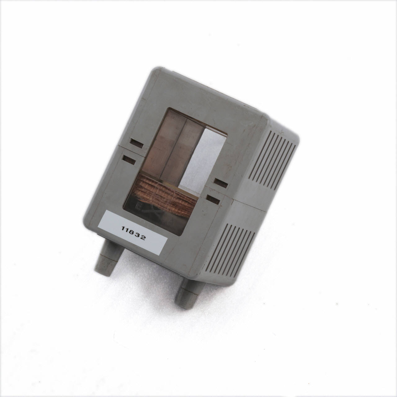 Questa bobina è costituita da 23000 spire. Gli avvolgimenti sono realizzati con fili di rame di spessore 0,1mm.\nLa custodia delle bobine è in materiale sintetico ed è chiusa da tutte le parti, con fessure laterali per il raffreddamento ed apertura quadrata per inserirvi il nucleo ad U. Una piccola zona trasparente nella parte superiore permette di vedere gli avvolgimenti.\nInizio e fine degli avvolgimenti sono collegati a due boccole da alta tensione (di ingresso e di uscita) poste sulla parete frontale, nelle quali vanno inseriti gli elettrodi a corna (attualmente mancanti).\nVicino alle boccole sono impressi il nome della ditta costruttrice, il modello, il numero di spire, la resistenza in corrente continua, l'induttanza e la corrente massima ammessa in modo permanente.