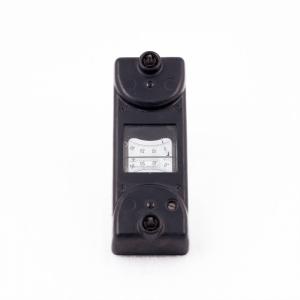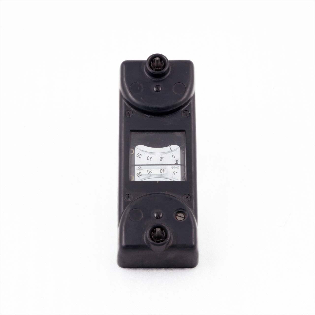 Questo strumento ha forma parallelelpipeda. Nei due estremi sono inseriti gli strumenti di misura veri e propri, a bobina mobile.\nAl centro una finestra quadrata in vetro permette la visione di una doppia scala graduata con punto zero centro sinistra.\nLe scale sono suddivise da -5 a +30 con tacche ogni unità ed indicazioni numeriche ogni 10.\nIn corrispondenza di ciascuno strumento di misura è inserito un connettore per i cavi coassiali di collegamento (mancanti).\nSul retro del dispositivo troviamo due piccole sporgenze in metallo per il posizionamento sul proiettore.\nE' inoltre presente un foro per l'inserzione di uno stelo metallico di sostegno.