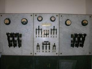 Al Museo è presente sono presenti tre pannelli del quadro elettrico originario, selezionati a fini espositivi. Questa porzione di quadro elettrico è costituita da una struttura in ferro divisa in tre parti, ciascuna ricoperta da un pannelli in marmo nella parte superiore della parete frontale. Su questi tre pannelli sono inseriti sei strumenti di misura elettrici, amperometri e voltmetri, e diversi interruttori a coltello.