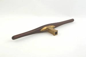 Maniglia in legno che presenta una rastremazione alle estremità. Un braccio in ottone, avvitato alla maniglia, consente l'innesto al torchio.