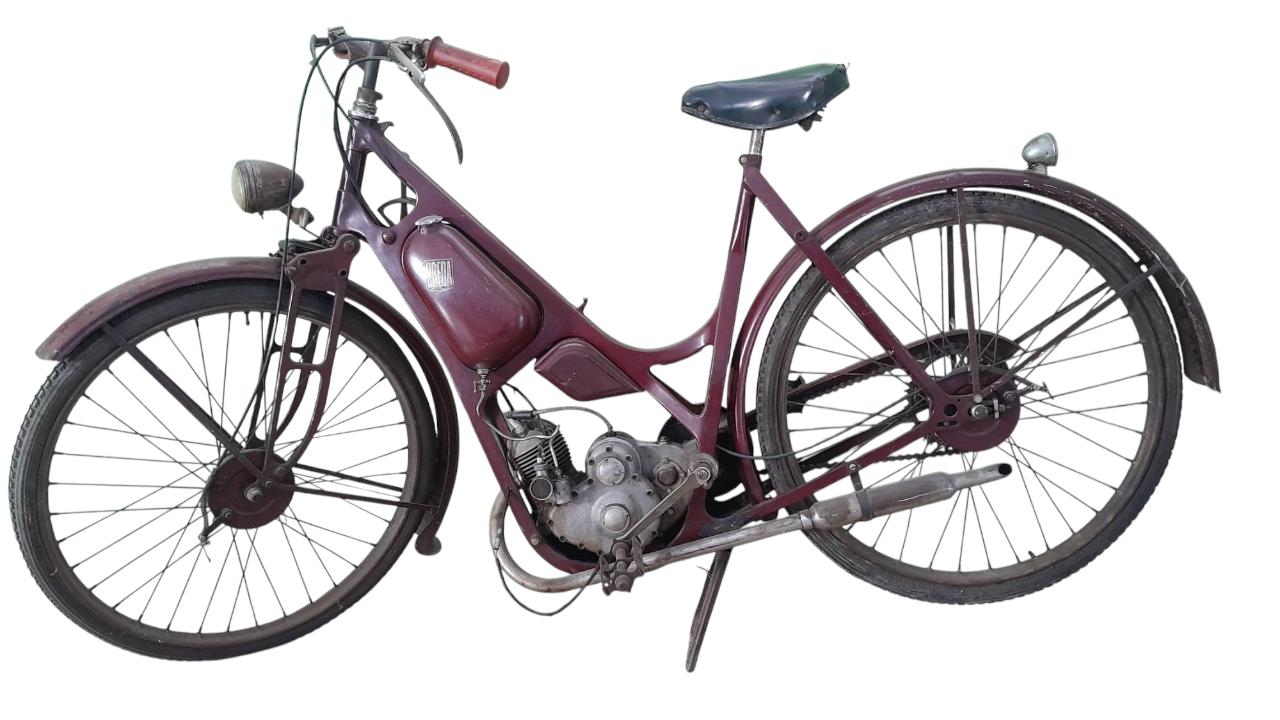 Veicolo a due ruote, munito di motore posizionato al centro del telaio con serbatoio sovrastante. Dotato inoltre di parafanghi e fari, è sostenuto da un cavalletto centrale.