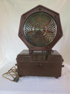 Apparecchio radio a cassetta in bachelite con serratura e coperchio. Davanti sono visibile le due scale di sintonia per onde medie e lunghe. Lateralmente sono disposte le manopole del volume e della sintonia e il selettore di gamma.\nSui fianchi e sul retro sono presenti le boccole per il collegamento dell'altoparlante esterno, dell'antenna, dell'alimentazione.\nAll'interno si trovano 4 valvole e due circuiti a reazione con rigenerazione in modulazione di ampiezza (AM).\nL'altoparlante magnetico a spillo in bachelite ha forma ettagonale con griglia protettiva in bronzo con decorazione stile Art Decò. Il retro dell'altoparlante è coperto da una griglia in metallo e una tela e fuoriesce il cavo di collegamento alla radio.