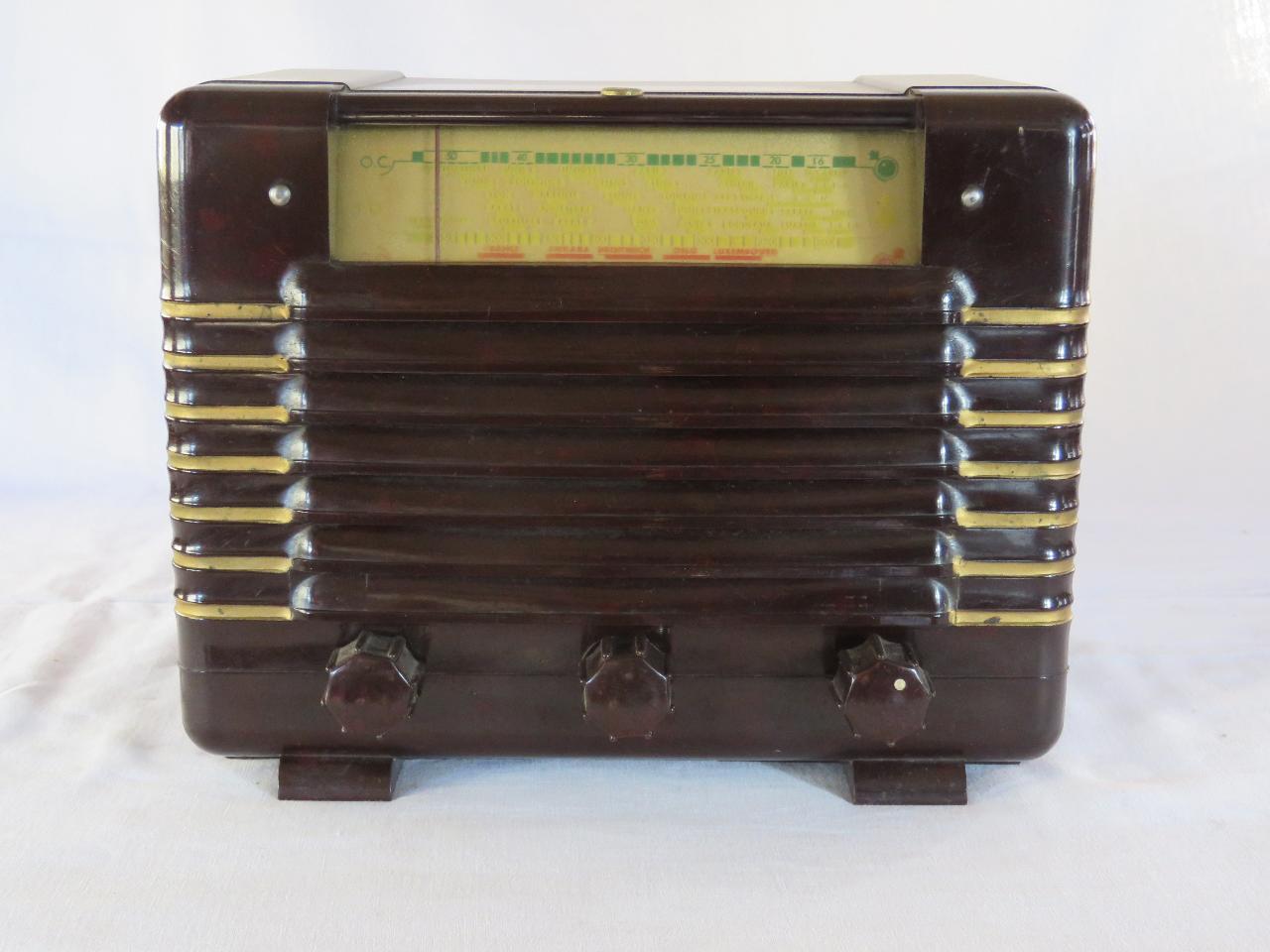 Apparecchio radio ad andamento orizzontale di dimensioni contenute e con mobile in bachelite con inserti dorati sugli spigoli verticali. Nella parte alta della parete frontale si trova la scala parlante illuminata da sinistra su cui sono indicate le lunghezze d'onda e le località. Tutta la restante parete frontale è occupata dall'altoparlante elettrodinamico coperto da aste a persiana in bachelite. Nella parte bassa sono disposte tre manopole per accensione/spegnimento e regolazione del volume, sintonizzazione e selezione della gamma d'onda.\nSul retro, sotto ad una griglia protettiva, è visibile il circuito supereterodina ZF/IF 472KHz a 4 valvole con circuiti in modulazione di ampiezza (AM) oltre all'altoparlante con le sue bobine. Sul retro sono presenti le presa per antenna e terra oltre alla presa per il filo di collegamento all'alimentazione.