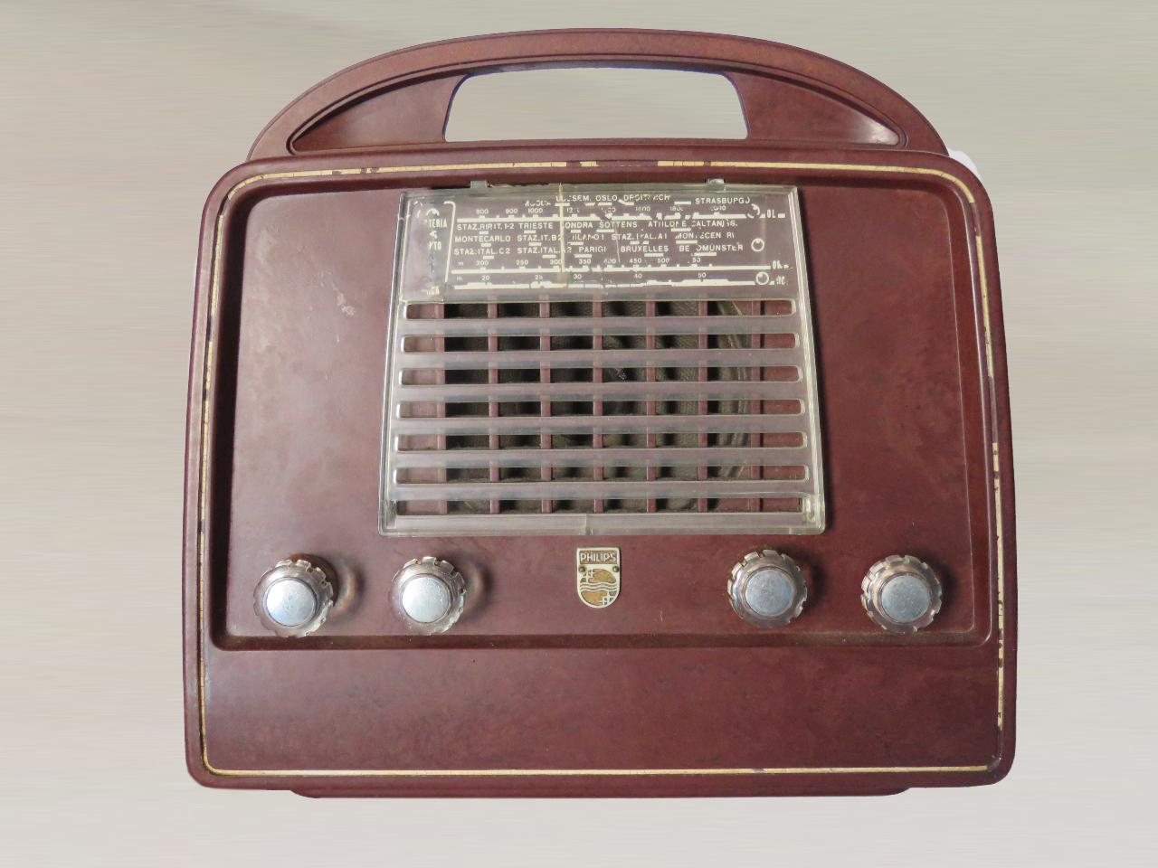 Apparecchio radio portatile con mobile compatto in bachelite e maniglia per il trasporto.\nAl centro della parete frontale è inserito l'altoparlante magnetodinamico protetto da una griglia verticale in bachelite. Davanti a questo è inserita una griglia orizzontale in materiale plastico trasparente con, in alto, la scala parlante lineare per le diverse gamme d'onda. Sulle scale sono indicate le lunghezze d'onda e i nomi delle località. Sotto all'altoparlante sono presenti quattro manopole trasparenti per la scelta della gamma d'onda, la regolazione del volume, la sintonizzazione e la regolazione dei toni.\nSul retro, sotto ad una griglia protettiva, sono visibili il circuito supereterodina con stadio RF, ZF/IF 452 KHz con sei circuiti accordati in modulazione di ampiezza (AM), 5 valvole serie U con filamento per alte tensioni (senza trasformatore) oltre all'altoparlante. Sul retro sono presenti una presa per antenna e terra e una per l'alimentazione.