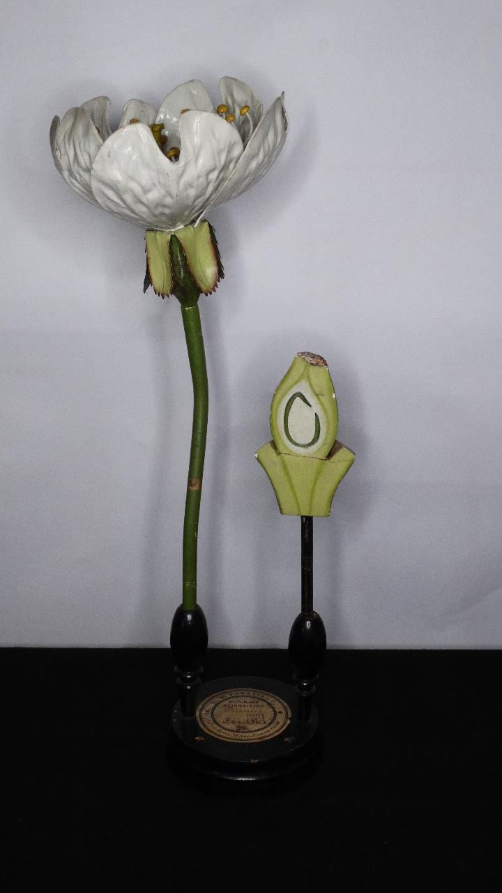 Modello di fiore e di ovario sezionato di ciliegio ingranditi. Il fiore è parzialmente scomponibile