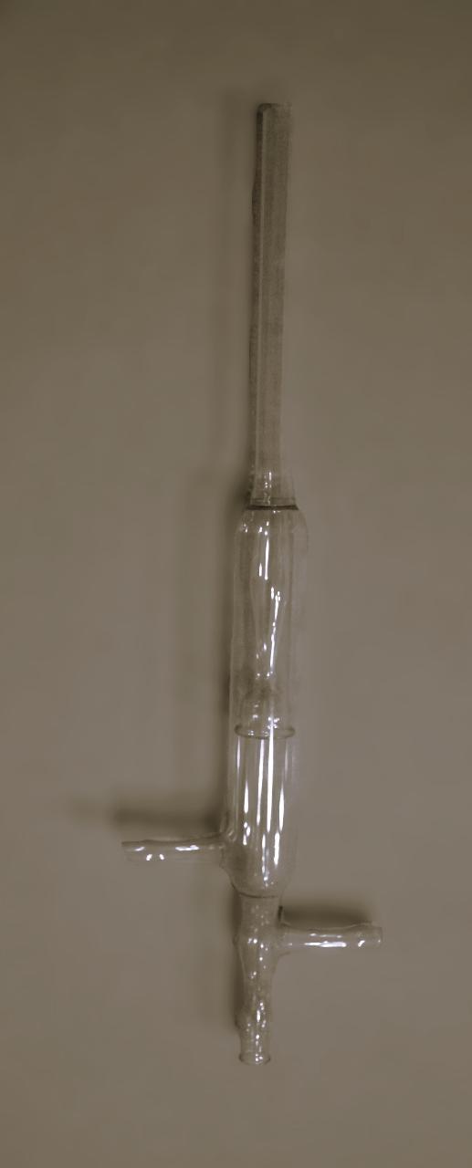 Lo strumento è formato da un tubo composito, in vetro incolore: nella parte superiore un semplice cannello cilindrico, nella parte centrale si sviluppa una camera interna a forma di imbuto, nella parte inferiore sono presenti due valvole sporgenti lateralmente.\n
