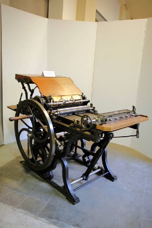 Macchina per stampa tipografica\nPianocilindrica \nCon doppio comando, volano e pedale. \nanno1890\nPezzo in perfette condizioni, molto raro