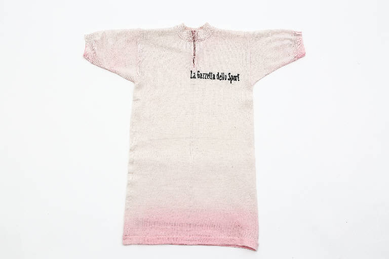 Maglia rosa in lana, girocollo con cerniera, con tasche con bottoni sia sul lato posteriore che anteriore, con la scritta Gazzetta dello Sport sul lato sinistro ad altezza cuore. \nNon presenta marchi di sponsor.\nIl lato posteriore non presenta applicazioni.\nLa maglia è in uno stato di conservazione medio. Il colore della maglia è molto scarico.\nLa maglia, in possesso dello stesso Bruno Mealli, è stata donata nel 2012 a Rcs grazie all'iniziativa Giro for Ghisallo, promossa da Gazzetta dello Sport e curata da Federico Meda, ed è attualmente in prestito ed esposta a tempo indeterminato presso il Museo del Ghisallo.\n\nMealli ha indossato la maglia rosa nel 1965 per cinque giornate:\n- la ottava tappa del 22 maggio Maratea > Catanzaro\n- la nona tappa del 23 maggio Catanzaro > Reggio Calabria\n- la decima tappa del 24 maggio Messina > Palermo\n- la undicesima tappa del 25 maggio Palermo > Agrigento\n- la dodicesima tappa del 26 maggio Agrigento > Siracusa\n\nL'edizione del Giro\nIl Giro d'Italia 1965, quarantottesima edizione della "Corsa Rosa", si svolse in ventidue tappe dal 15 maggio al 6 giugno 1965 per un percorso totale di 4 151 km. Fu vinto da Vittorio Adorni, secondo Italo Zilioli, terzo Felice Gimondi.\nInusuale il percorso di questa edizione: prima parte verso sud, fino alla cronometro di Taormina; quindi trasferimento dalla Sicilia a Milano, e conclusione a Firenze (per la prima volta).\n\nIl Giro muove per la prima volta dall'estero, dalla Repubblica di San Marino. Vittorio Adorni, in gran forma, prenota il successo: si muove nella Avellino-Potenza in cui stacca Bitossi di 2' 48", Mugnaini di 2' 54" e Taccone di 4' 21" e conquista la maglia rosa. A Catanzaro Mealli entra nella fuga giusta e gliela sfila, ma dopo sei giorni, nella cronometro da Catania a Taormina Adorni, ne rientra in possesso. Dopo il trasferimento in aereo da Catania a Milano, Adorni consolida il primato nella tappa Saas Fee-Madesimo, facendo il vuoto sullo Spluga. In prossimità dei 2.757 metri dello Stelvio, prima "Cima Coppi" della storia, una slavina blocca la strada a trecento metri dal traguardo e i corridori superano l'ostacolo portando a mano la bici.\n\nTappe che hanno toccato la Lombardia\n19°, 3 giugno, Saas Fee (CH) > Madesimo\n20°, 4 giugno, Madesimo > Passo dello Stelvio\n21°, 5 giugno, Bormio > Brescia\n22°, 6 giugno, Brescia > Firenze