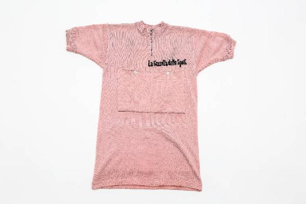 Maglia rosa in lana indossata da Gianni Motta al Giro d'Italia del 1966.\nProdotta da Vittore Gianni, la maglia ha colletto a girocollo con cerniera, tasche con bottoni sia sul lato anteriore che posteriore, marchio Gazzetta dello Sport davanti, a sinistra, posizione cuore, nessun marchio di sponsor.\nLo stato di conservazione è discreto, presenta macchie scure, forse di caffè, sulla parte alta.\nLa maglia in possesso dello stesso Gianni Motta è stata donata nel 2012 a Rcs grazie all'iniziativa Giro for Ghisallo promossa da Gazzetta dello Sport e curata da Federico Meda ed è attualmente in prestito ed esposta a tempo indeterminato presso il Museo del Ghisallo.\nMotta ha indossato la maglia rosa nel Giro 1966 per 8 tappe, dalla 15° alla 22°, fra queste in Lombardia la quindicesima, da Arona a Brescia e la sedicesima il 3 giugno, da Brescia a Bezzecca.\n\nL'edizione del Giro\nIl Giro d'Italia 1966, quarantanovesima edizione della "Corsa Rosa", si svolse in ventidue tappe dal 18 maggio al 9 giugno 1966 per un percorso totale di 3 976 km. Fu vinto da Gianni Motta.\nIn questa edizione del Giro fu introdotta la classifica a punti.\nDi nuovo una partenza dall'estero, stavolta dal Principato di Monaco, per le celebrazioni del centenario di Montecarlo. Assiste alla partenza anche la principessa Grace. Il favoritissimo Anquetil perde il Giro già nella prima tappa, a Diano Marina attardato di 3'15". Diverrà un gregario di lusso per il compagno di colori Julio Jimenez, in rosa per undici giornate. Scivola via anche Gimondi, per foratura nella seconda tappa. Lo attaccano e perde 3'. Vittorio Adorni vince in casa, la cronometro di Parma e conquista la maglia rosa. La tiene per due tappe poi gliela sottrae Gianni Motta, che consolida il suo margine a Levico Terme dopo un bel duello con Jimenez al Valico del Vetriolo. Ancora a segno a Moena, Motta vince con merito il Giro.\nTappe in Lombardia\n15° 2 giugno, Arona > Brescia\n16°, 3 giugno, Brescia > Bezzecca