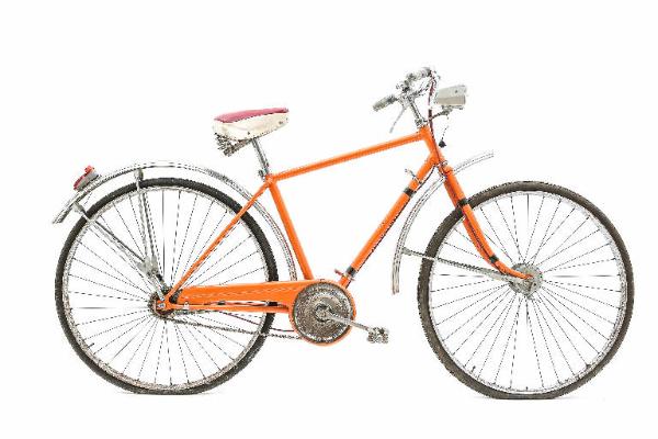 Telaio in acciaio con sistema di trasmissione a catena con corona e pignone su ruota libera, senza cambio. Freni a tamburo nel mozzo, raggi di diverse lunghezze per permettere il montaggio ecccentrico del mozzo rispetto al cerchio. La bicicletta è dotata d iparafanghi e sistema di illuminazione.