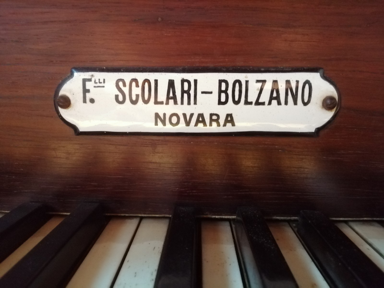 - ISCRIZIONE 1896/ FRATELLI SCOLARI/ FABBRICANTI D'ORGANI/ (NOVARA) BOLZANO