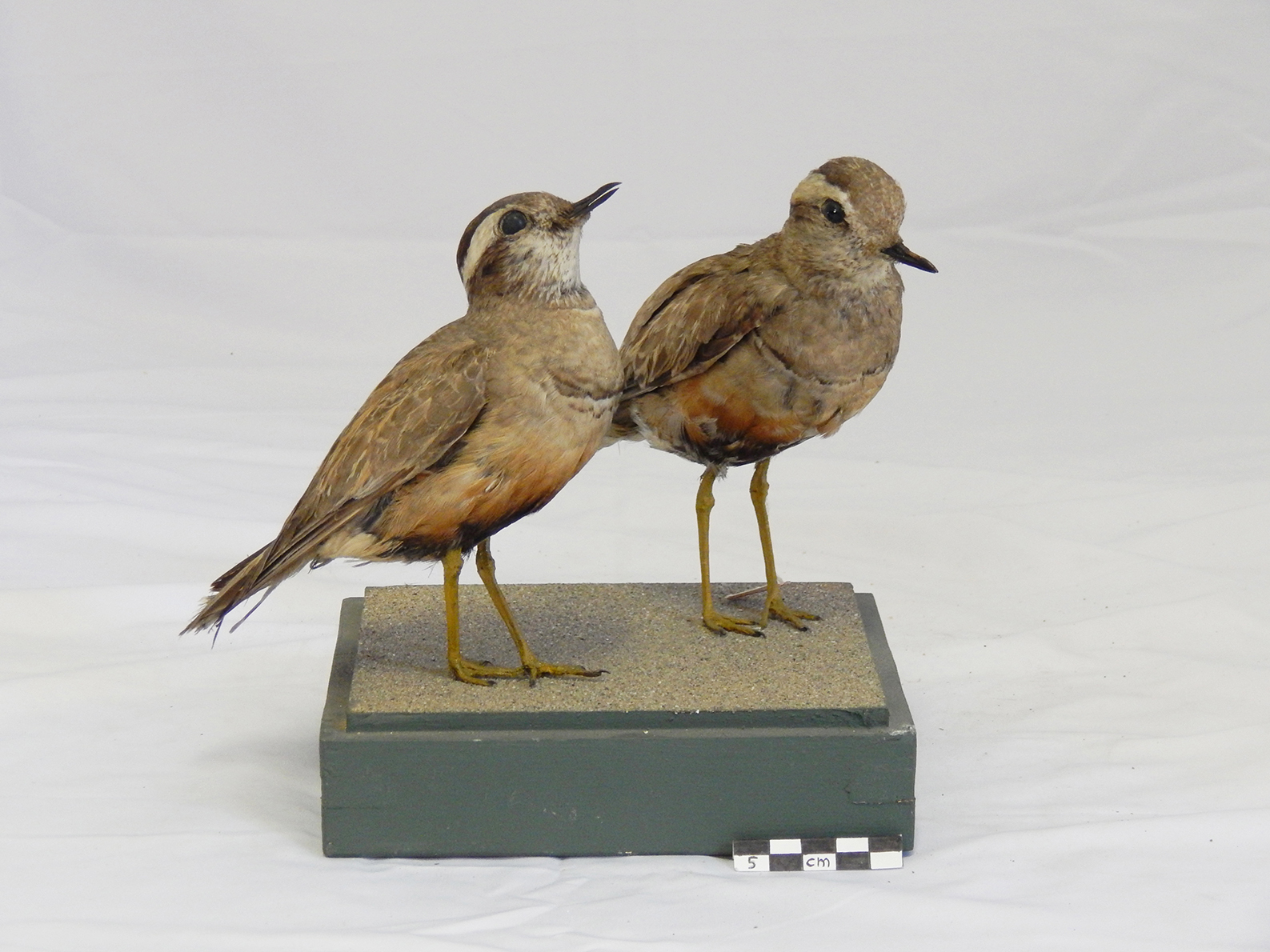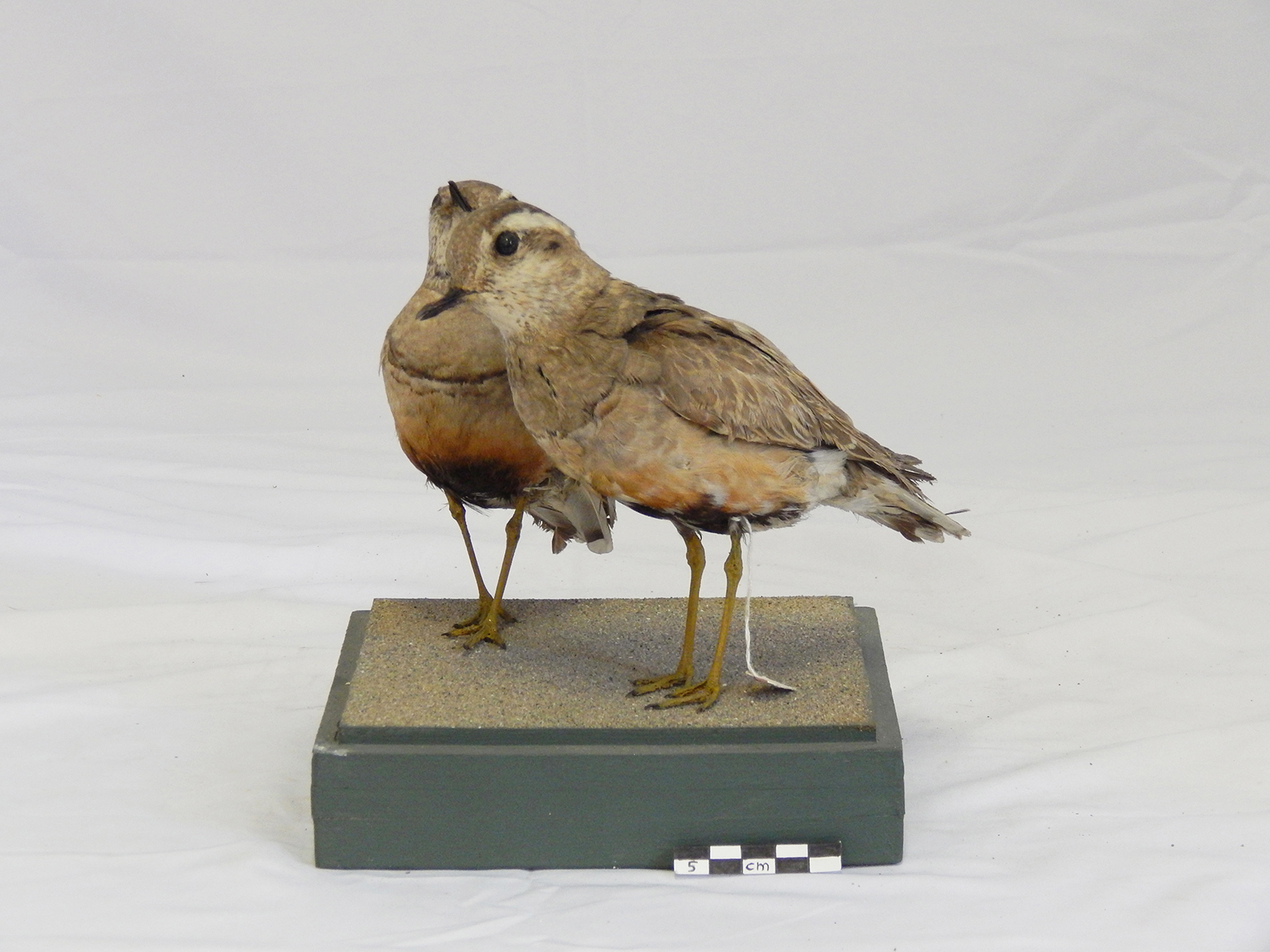 : Due esemplari di piviere tortolino tassidermizzati, montati su base |