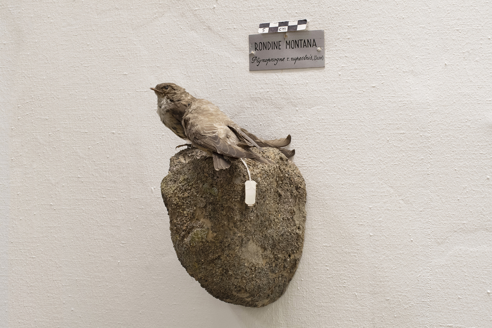 Due esemplari di Rondine montana, di cui un maschio, tassidermizzati e montati su roccia