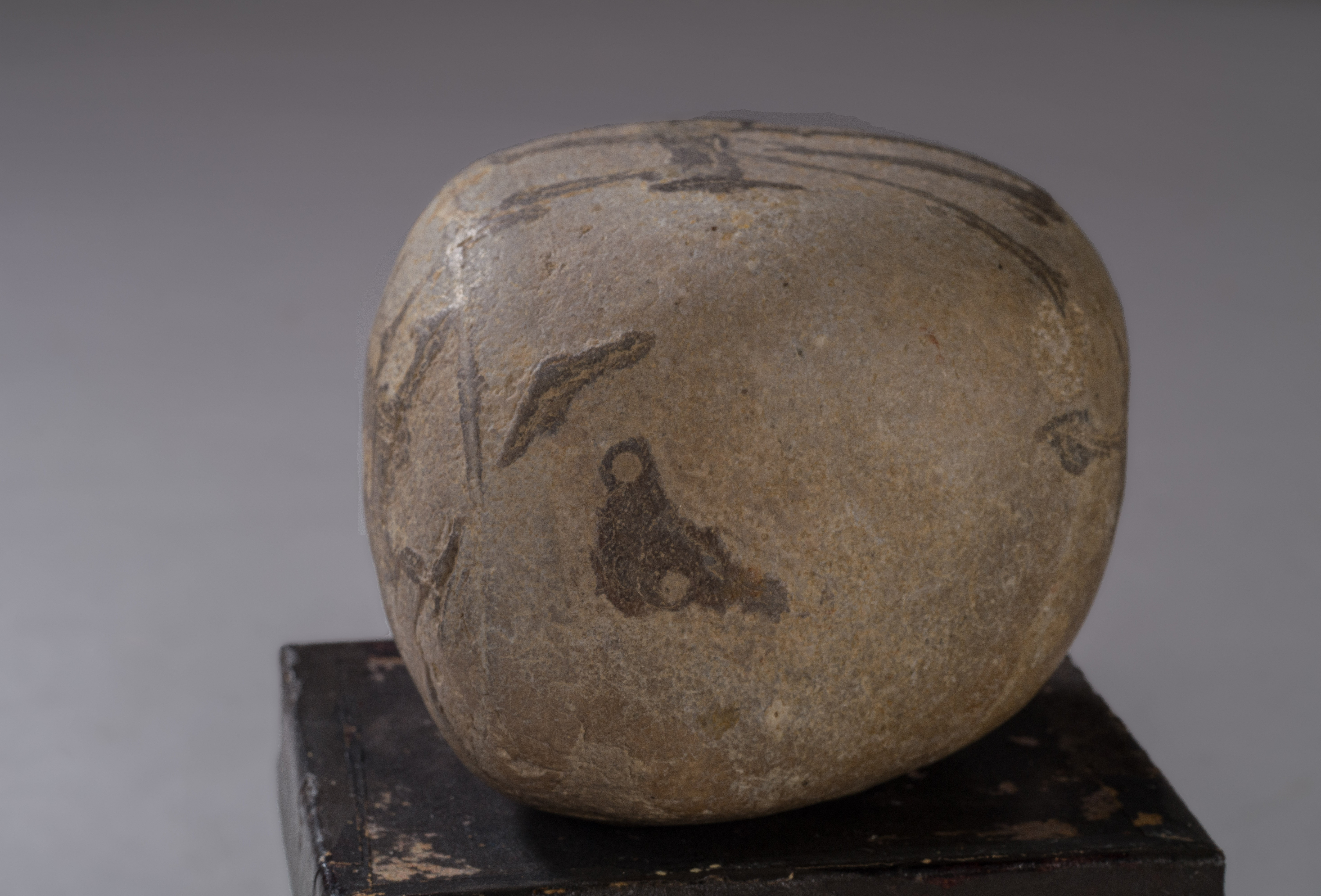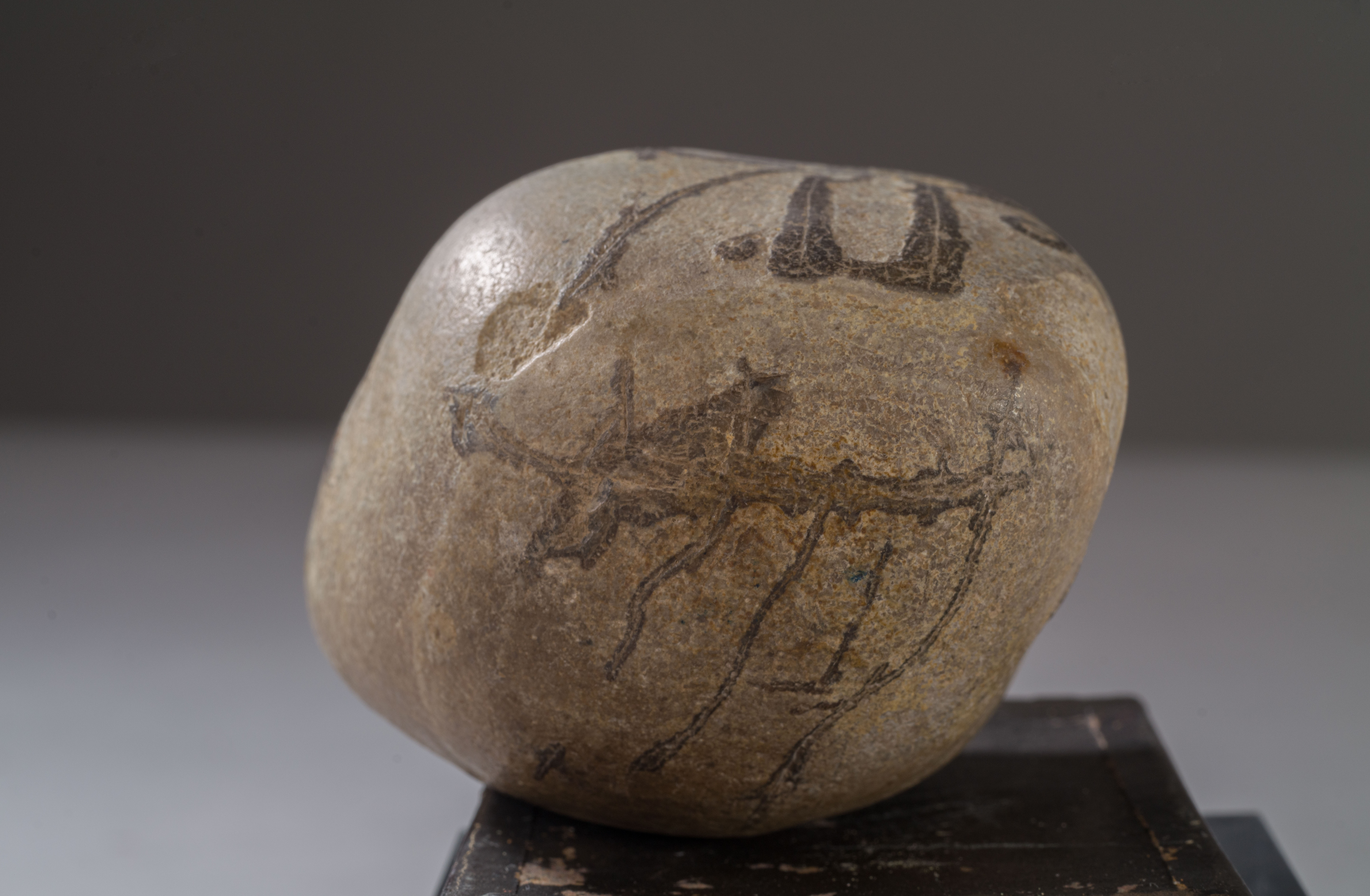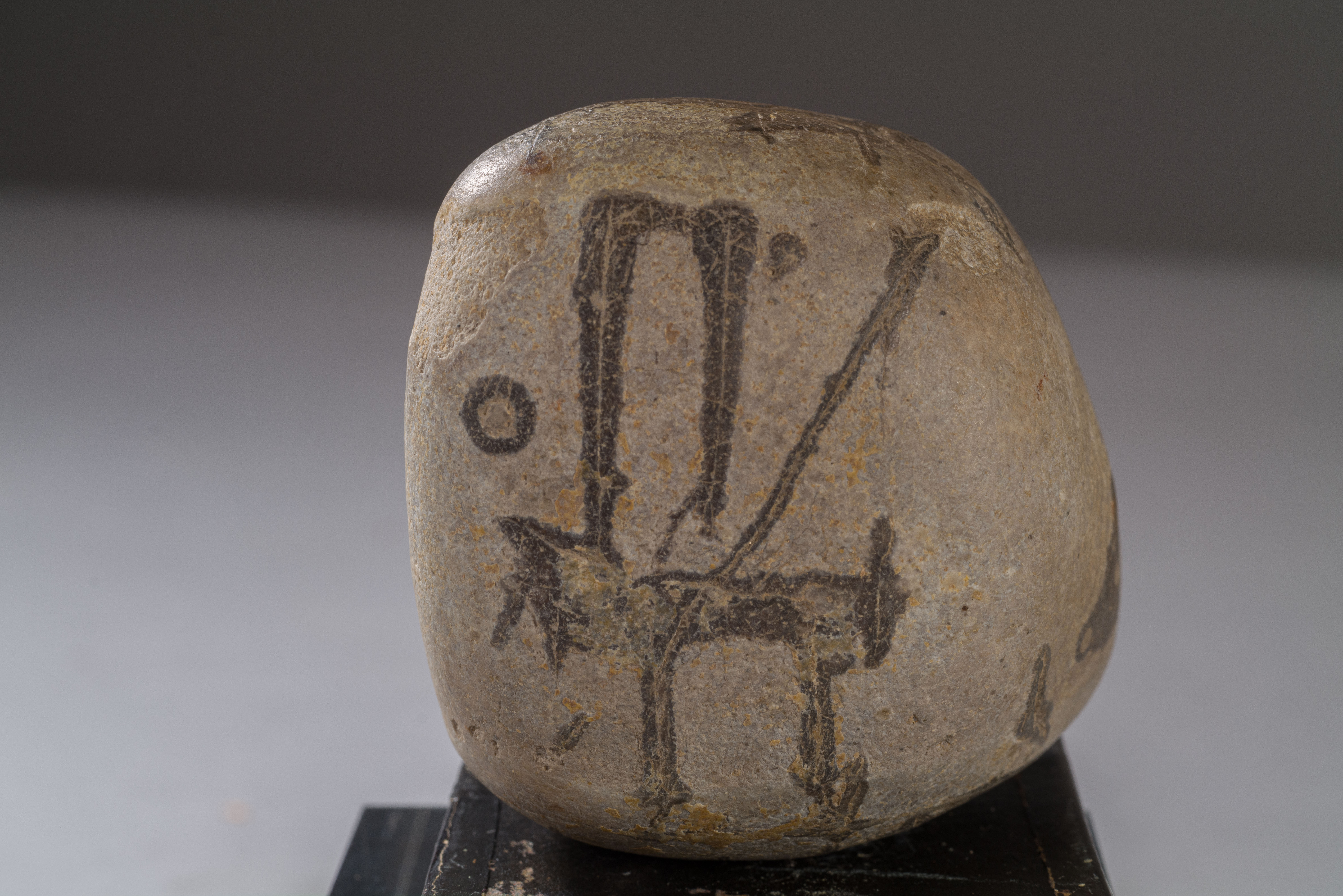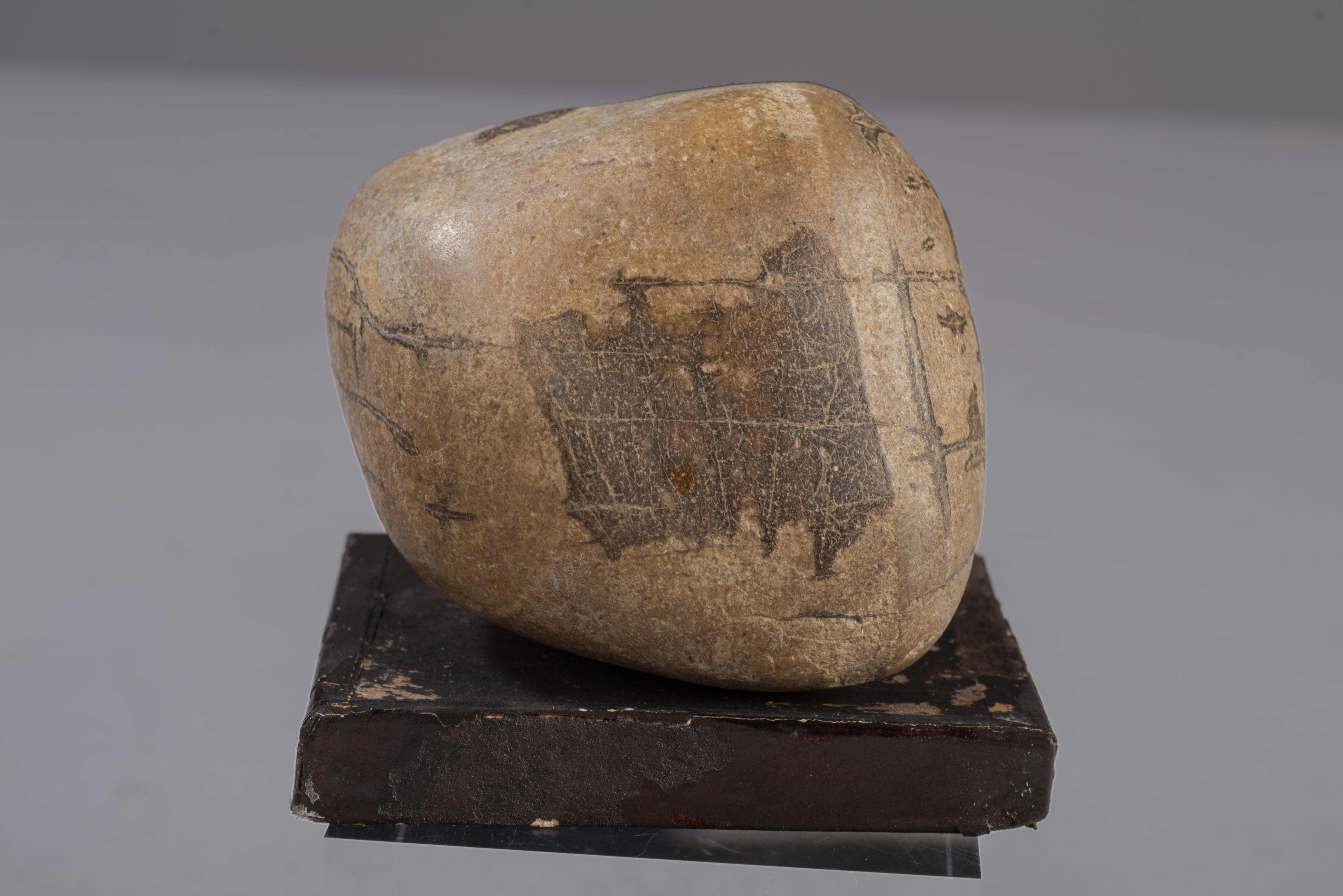 Ciottolo siliceo con venature che ricordano la forma di un geroglifico