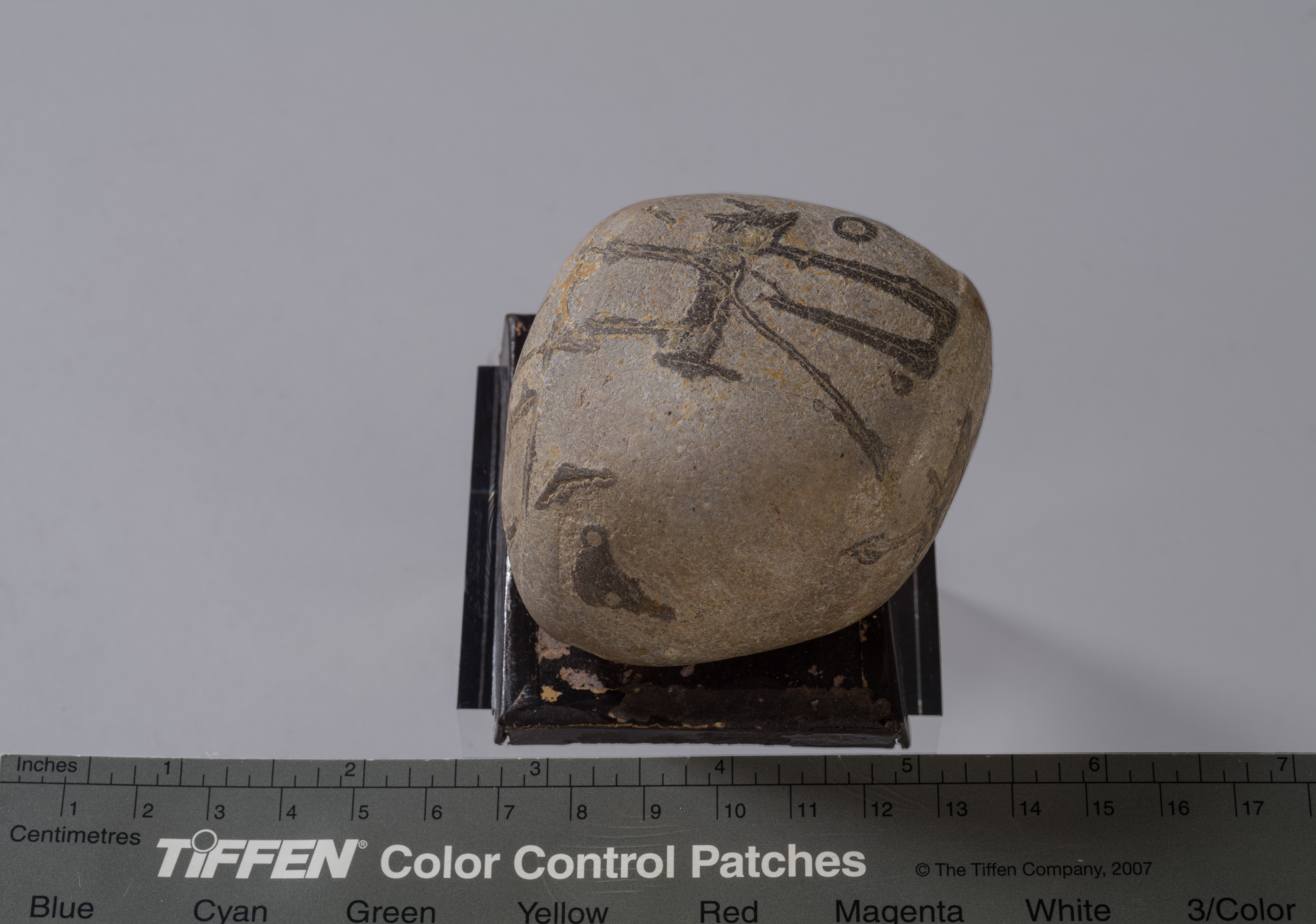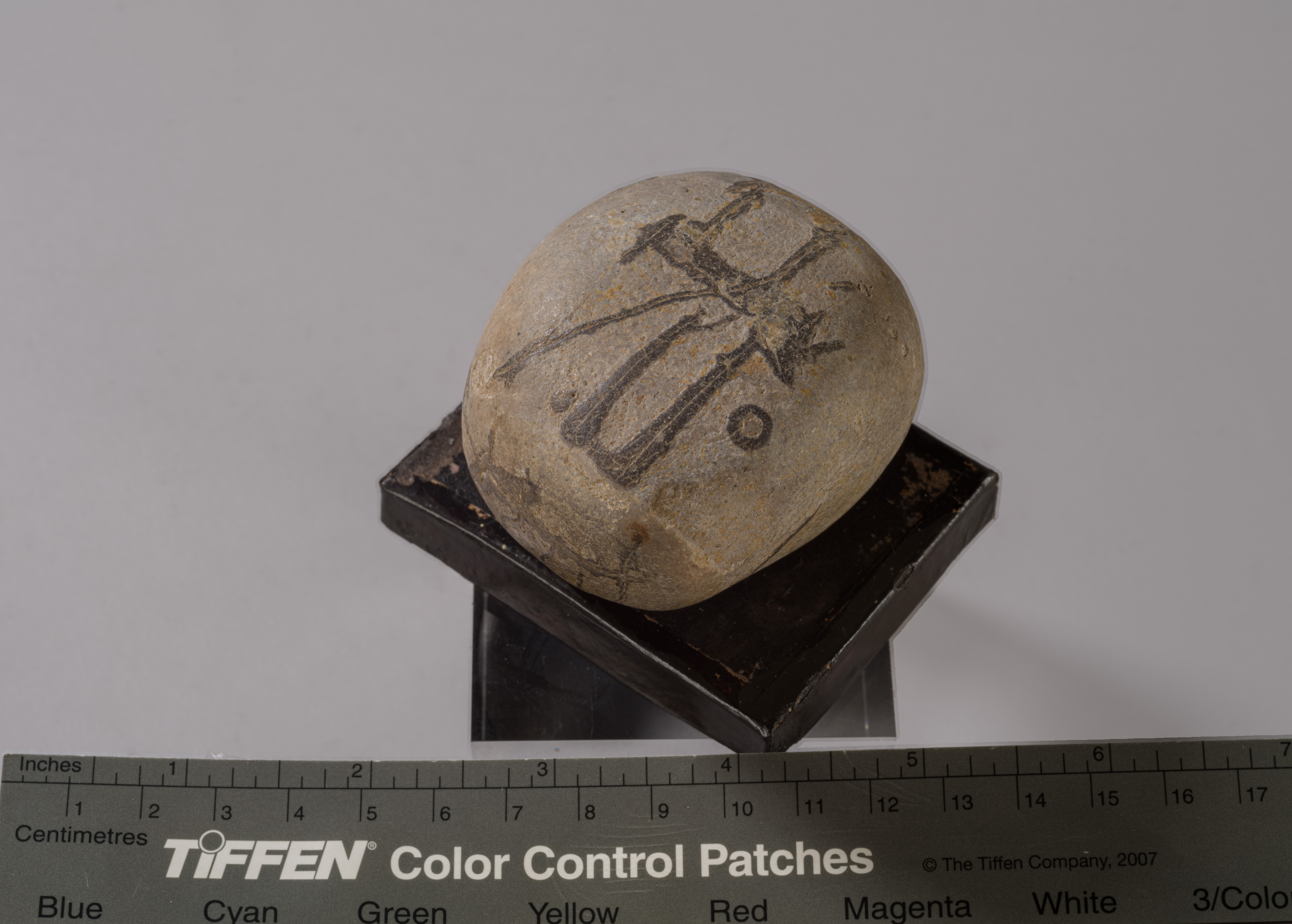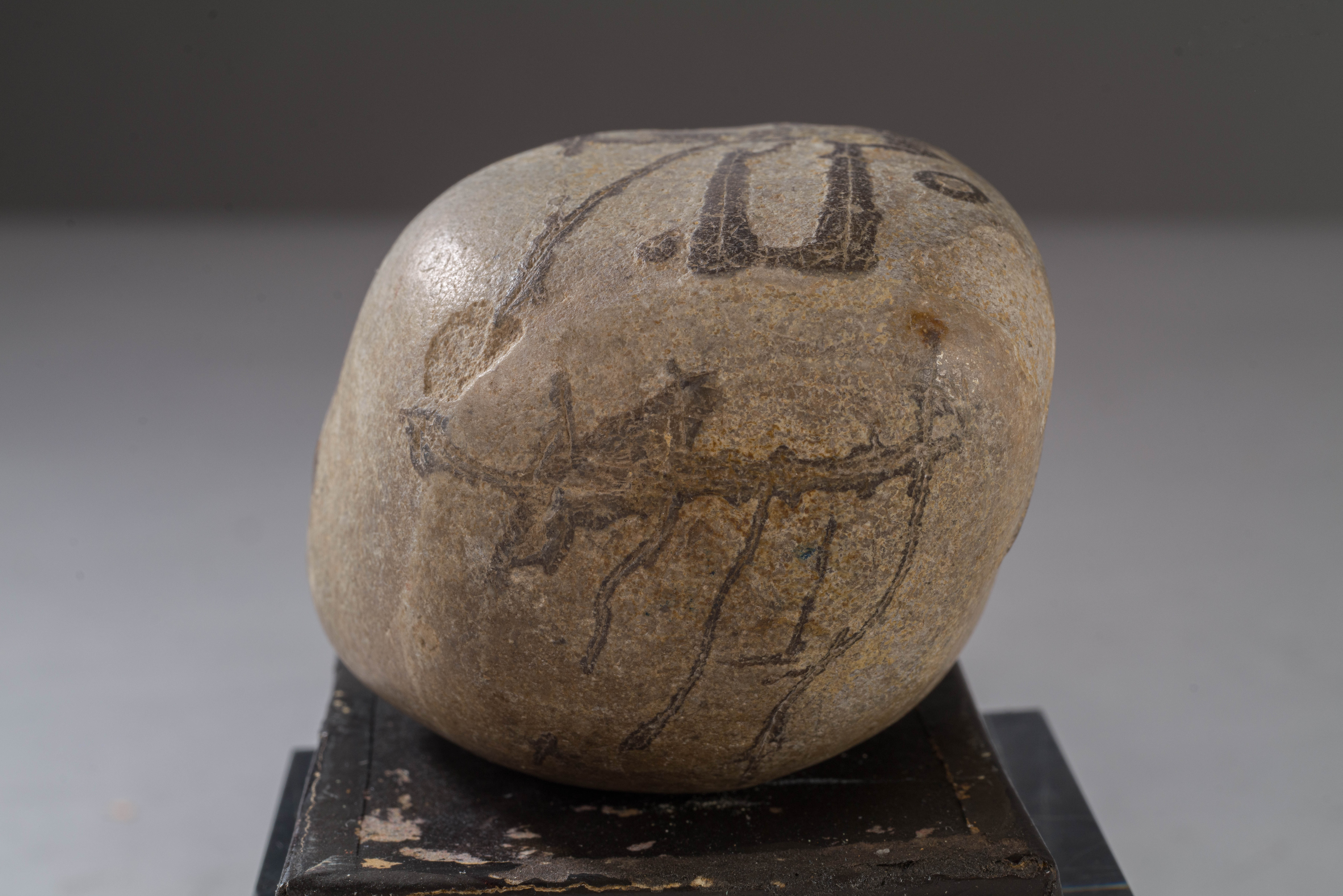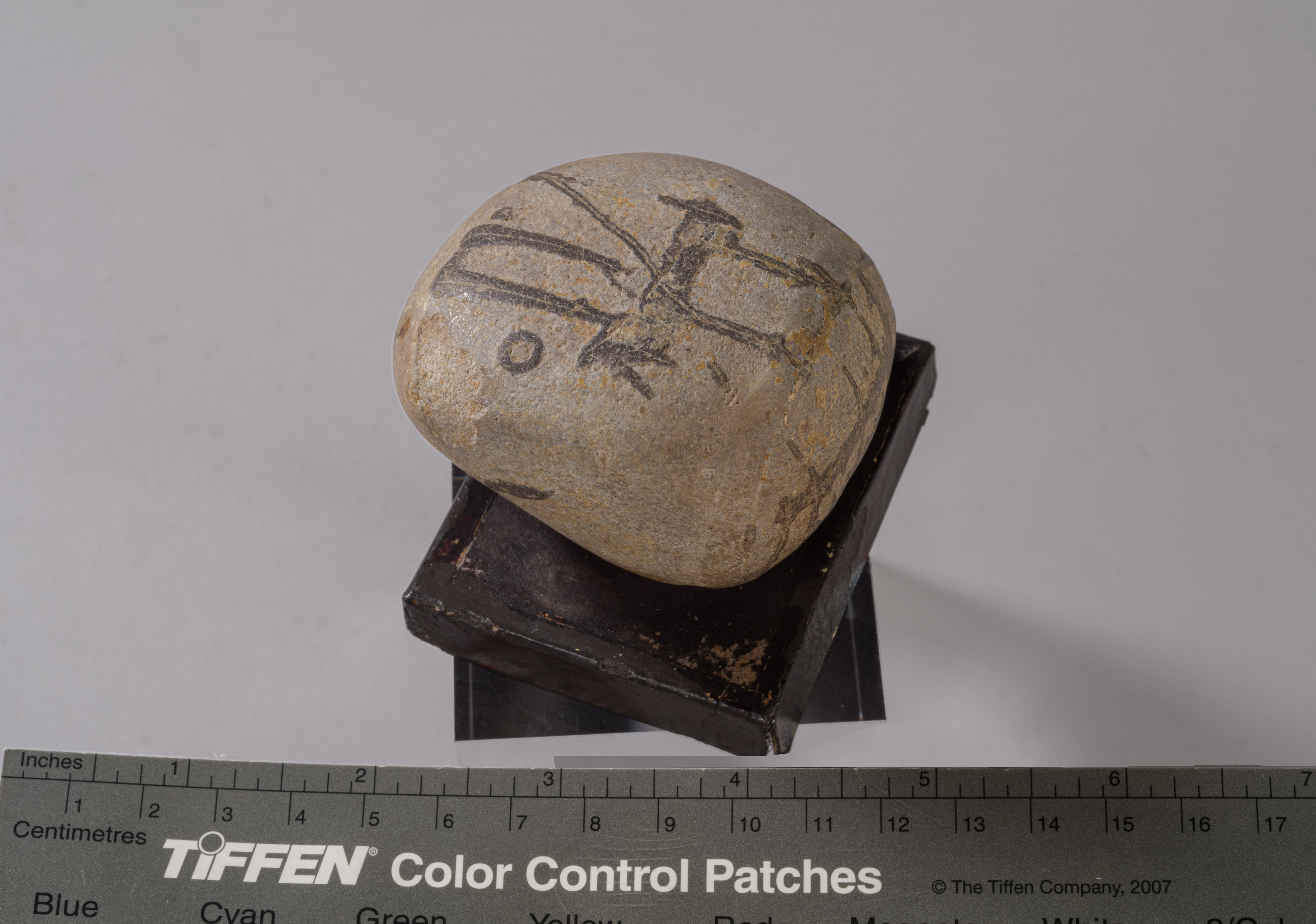 Ciottolo siliceo con venature che ricordano la forma di un geroglifico