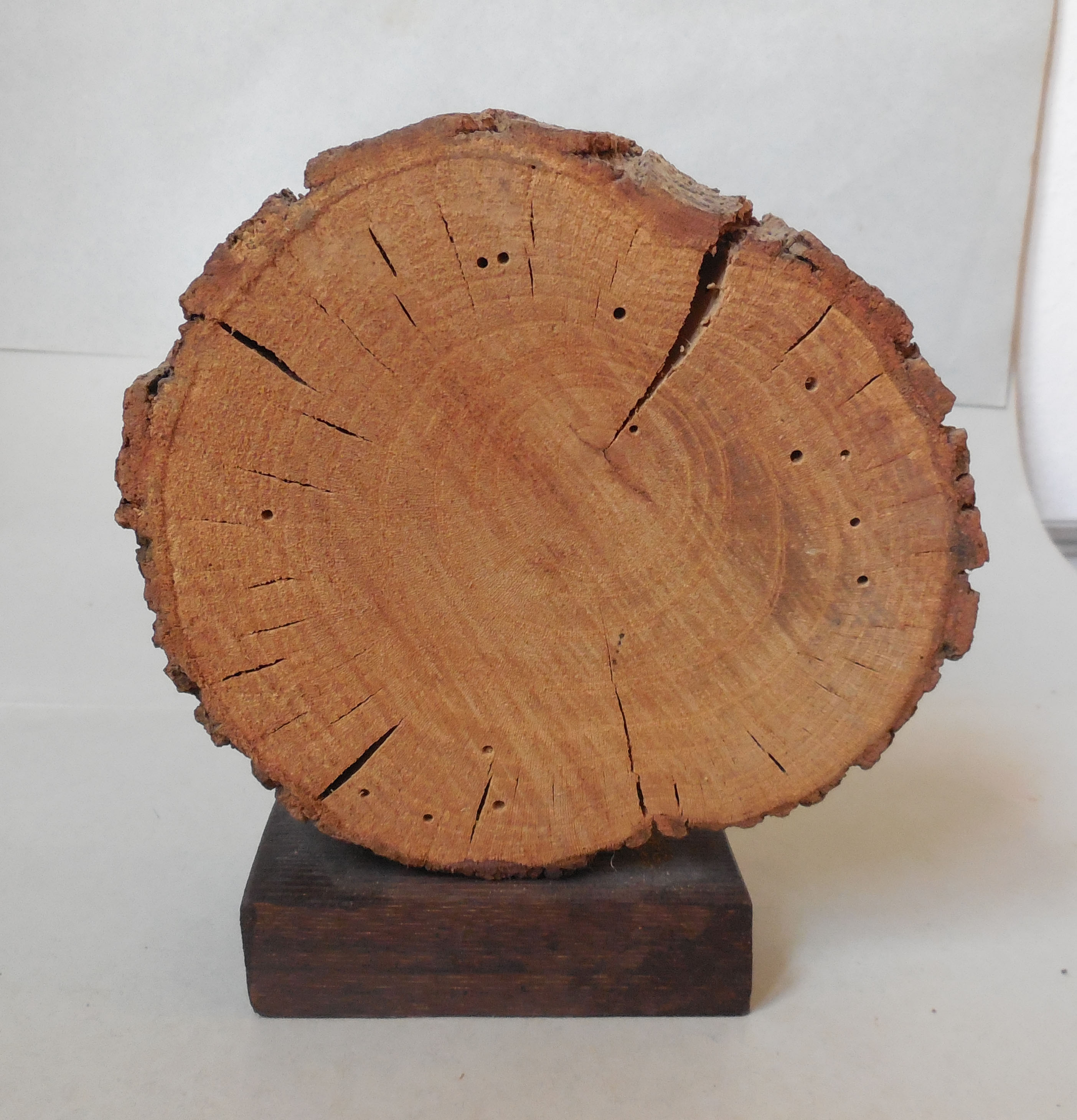• NOTIZIE STORICO CRITICHE Il campione è una rondella di legno grezzo munito di corteccia, ricavata dal taglio trasversale di un tronco o di un ramo, successivamente sistemata su un supporto ligneo sul quale si trova un numero d'ordine e il cartellino che riporta il nome scientifico della specie. Sulla faccia è stata applicata della coppale. Il campione fa parte di una collezione nata grazie al lavoro del Prof. B. Longo e del Prof. A. Preda, direttori dell'Orto Botanico di Siena rispettivamente dal 1906-1915 e dal 1915-1921. Nella collezione vennero radunati i campioni raccolti dal Prof. A. Tassi e altri reperti legnosi provenienti dall'Orto, molti dei quali recuperati nel 1915 dalle piante stroncatesi durante una nevicata. La collezione è stata incrementata fino alla fine degli anni '50 per merito del Prof. A. Nannizzi, direttore dell'Orto dal 1934 al 1950