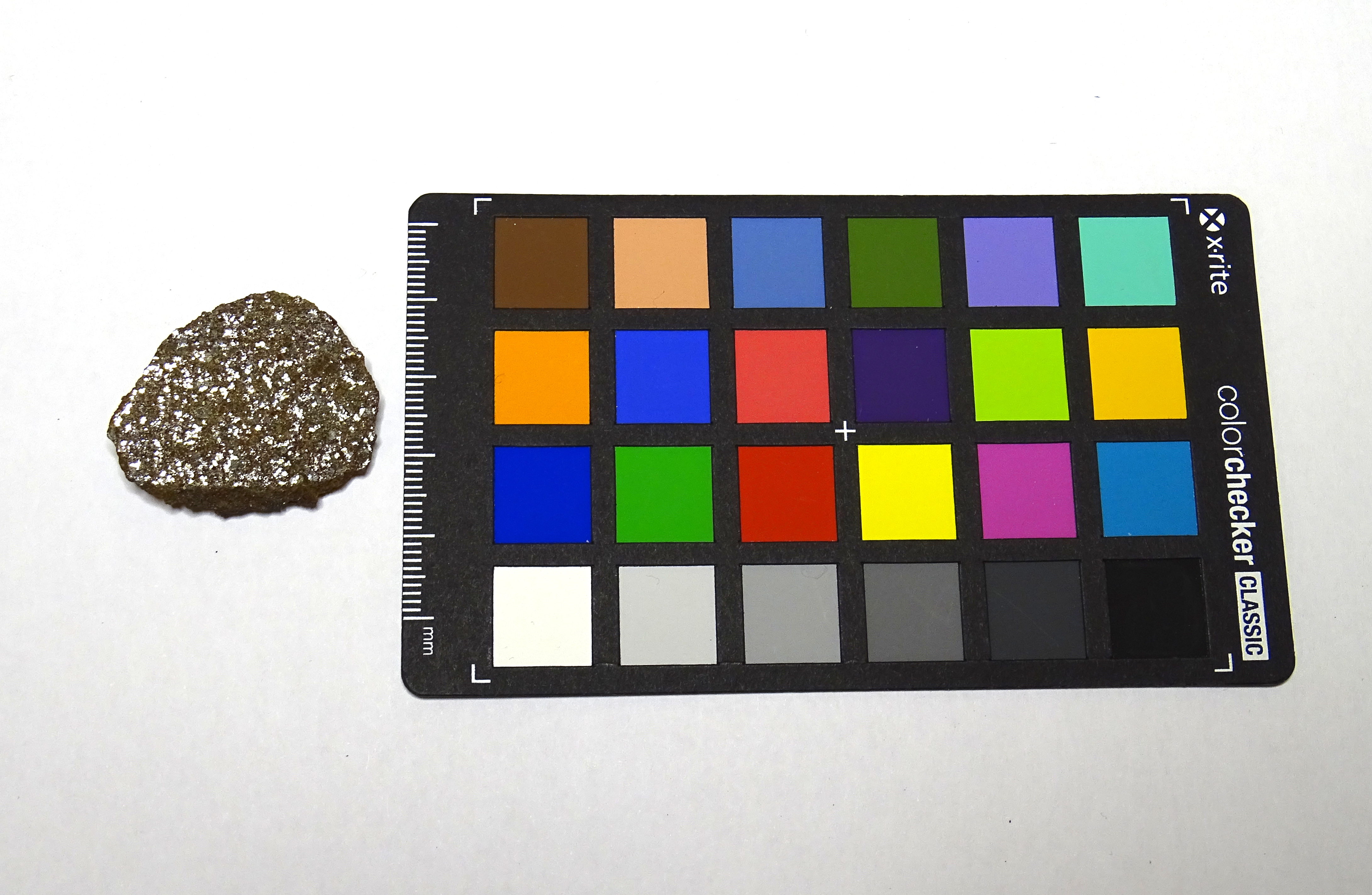 Fetta con crosta di fusione e piccolo frammento. Si può notare la presenza di metallo non ancora ossidato