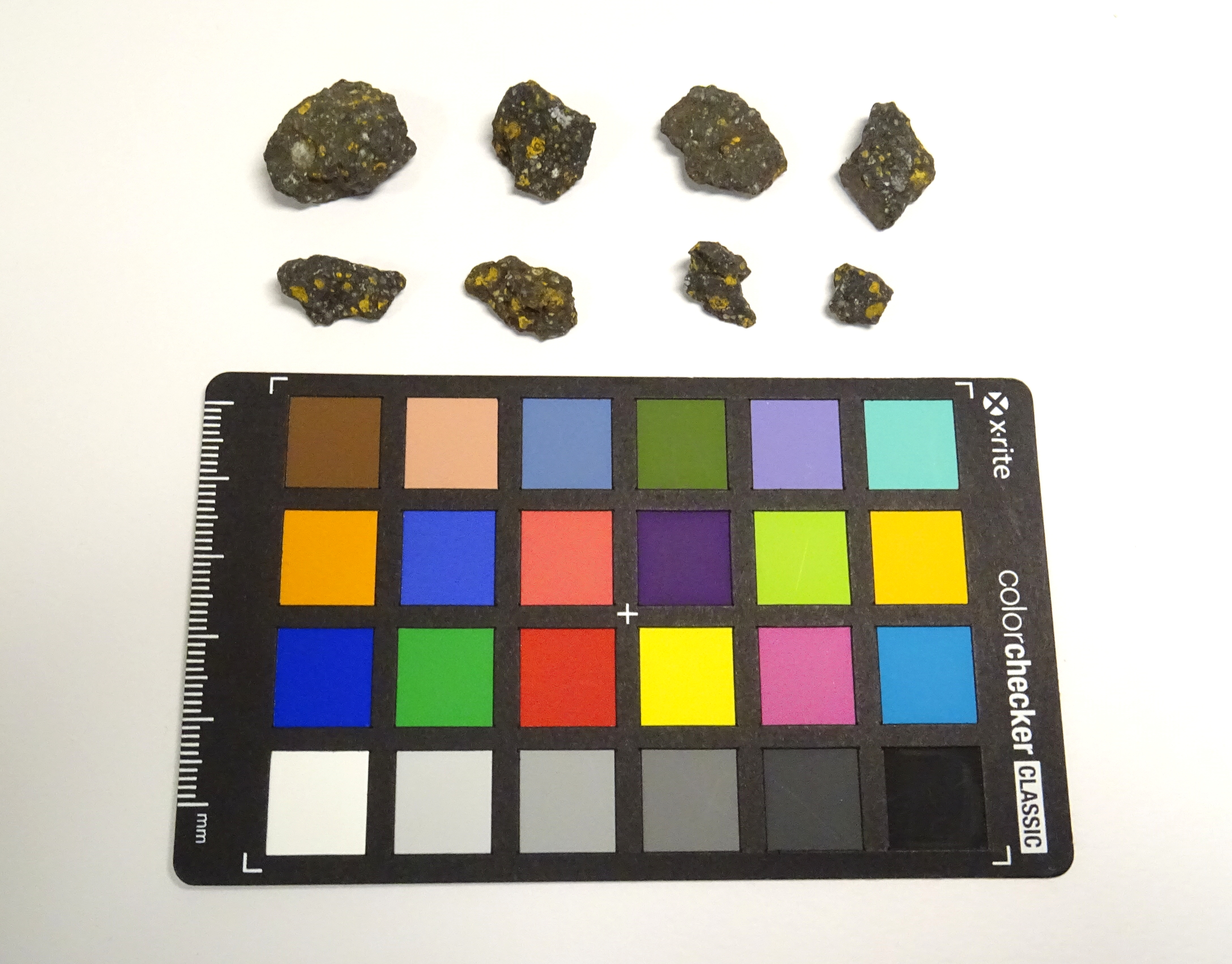 Otto frammenti di cui uno con crosta di fusione. Nei framemnti sono ben evidenti le condrule
