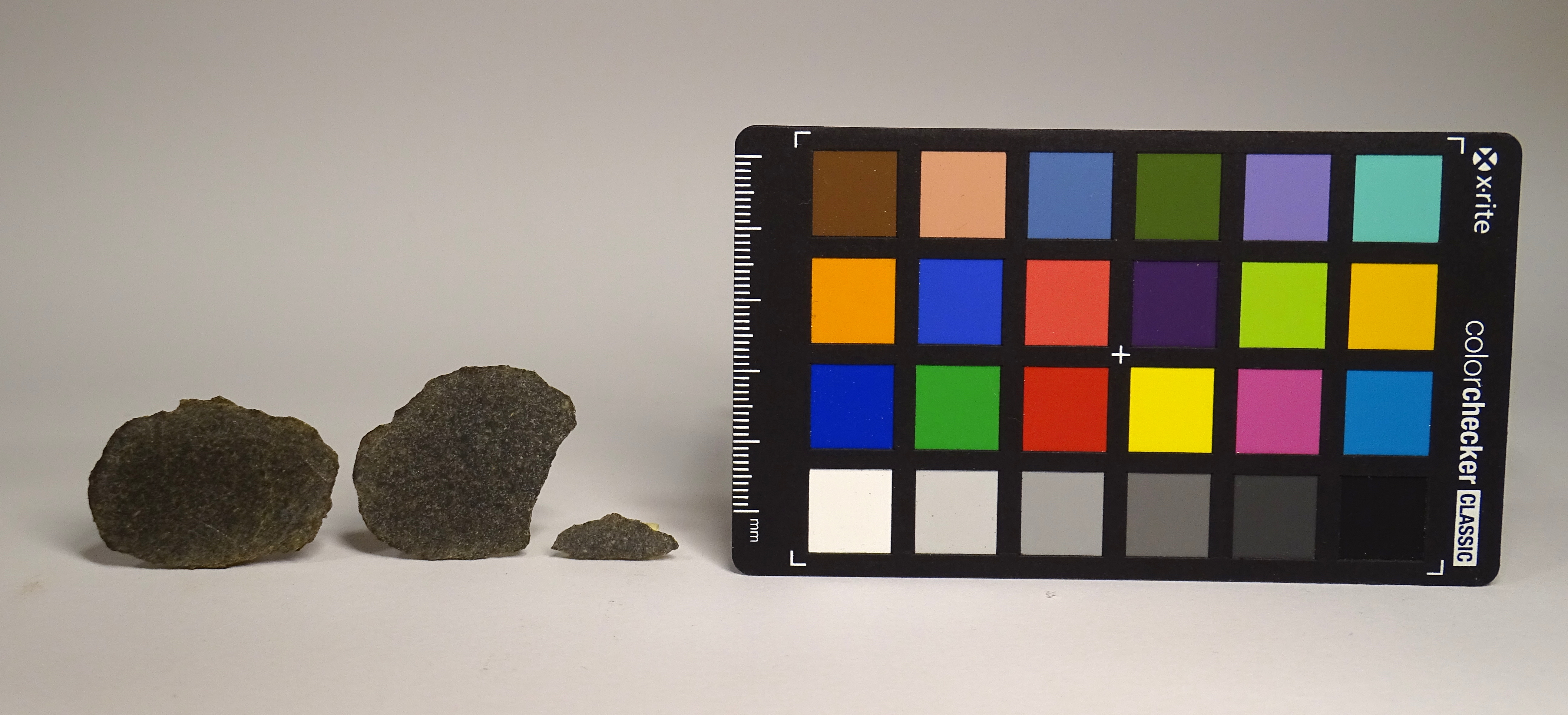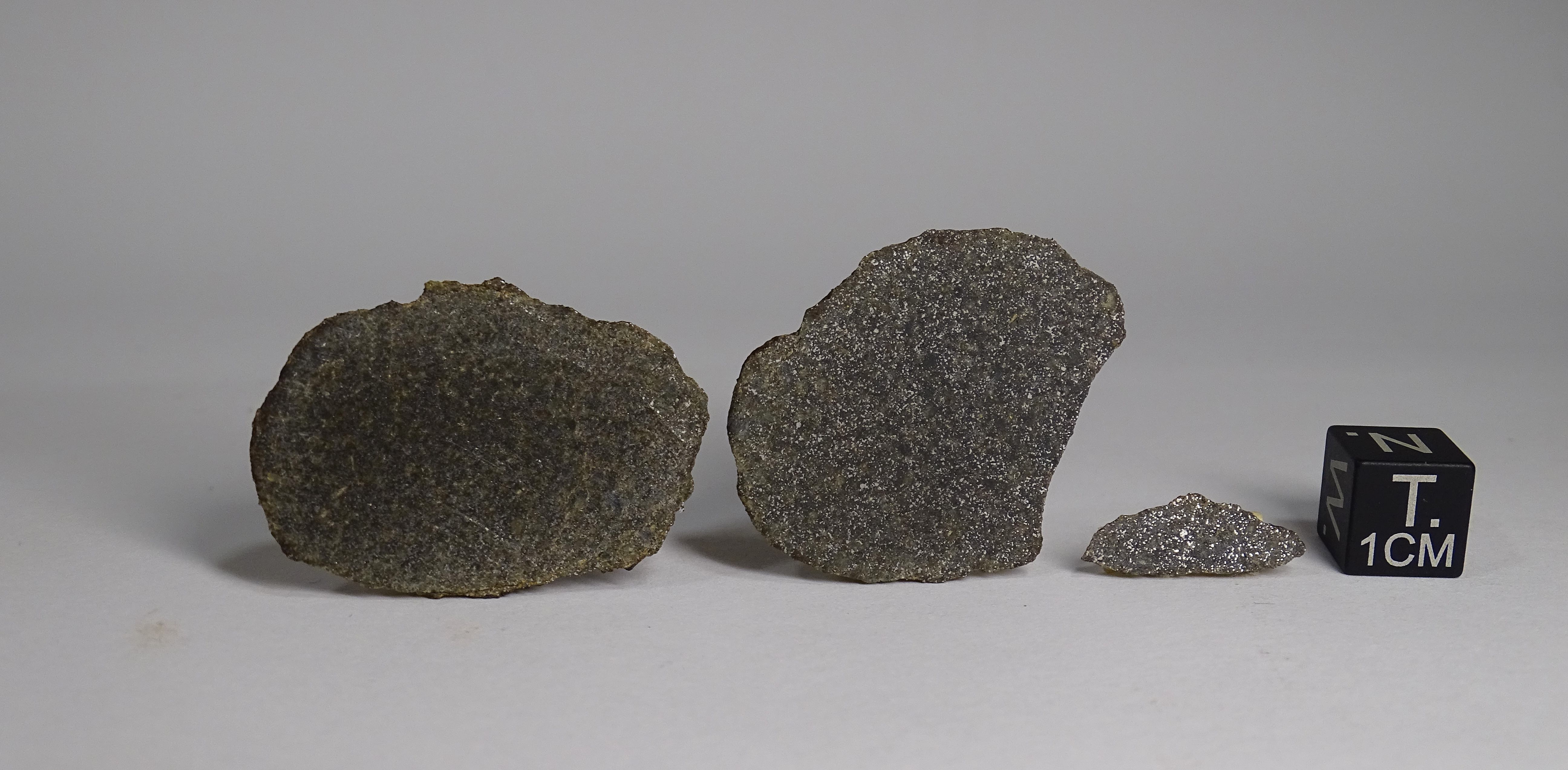 Una fetta completa (Inv. n. 5149/1) e due fette parziali complementari (Inv. n. 5149/2 e Inv. n. 5149/3). Nei tre campioni è ben evidente la porzione metallica