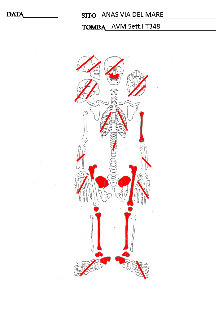 AVM Sett.I T348 Resti scheletrici pertinenti un individuo adulto. Scheletro con un buon grado di rappresentatività e cattivo di conservazione