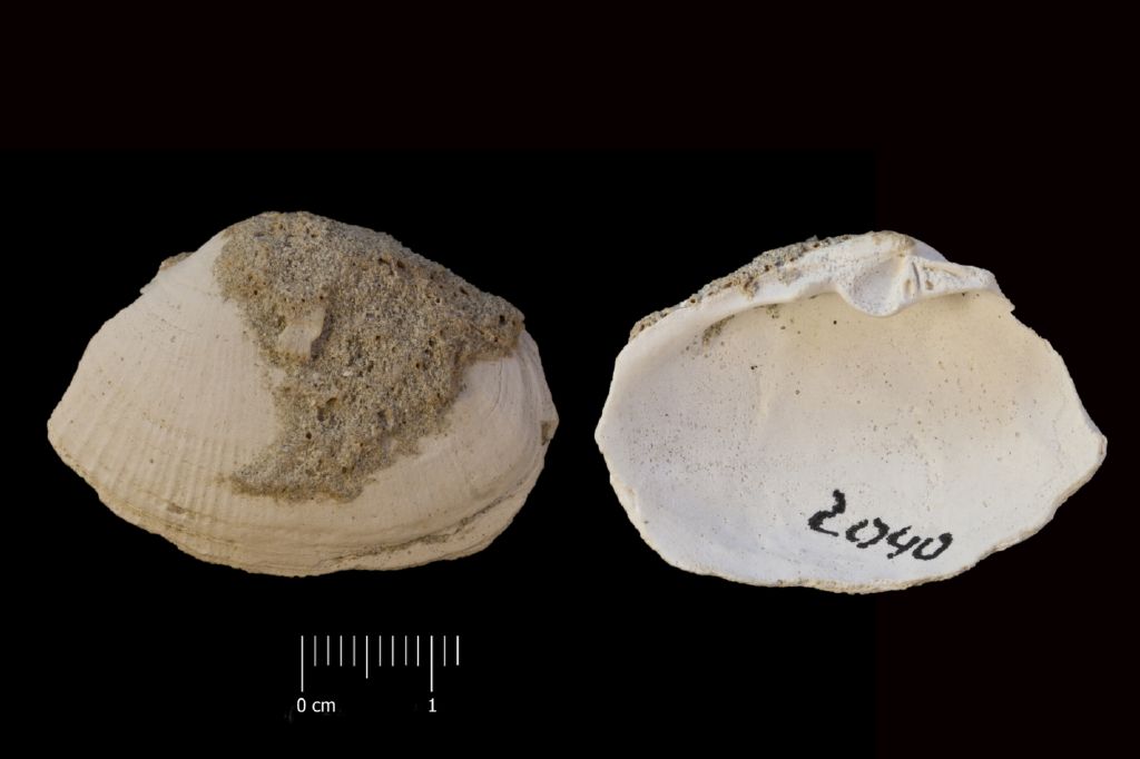 Valva sinistra non integra. Conchiglia inequilaterale di forma subovale allungata. Cerniera e impronte muscolari visibili. Mancano il bordo ventrale, quello posteriore e una porzione del lato anteriore della conchiglia. Presenza di matrice arenecea fossilifera