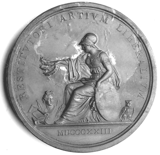 Dritto: Testa di profilo del re Carlo Felice a s. Rovescio: Minerva come patrona delle arti